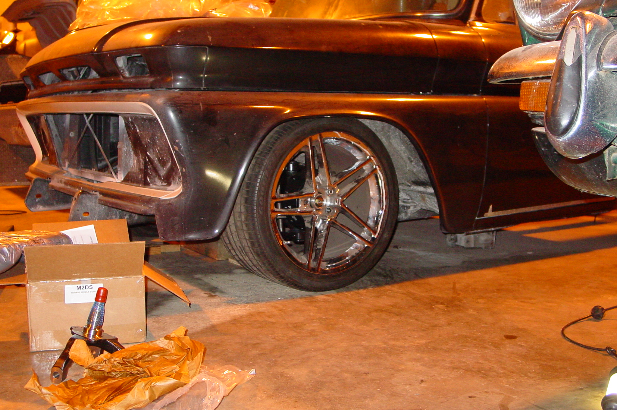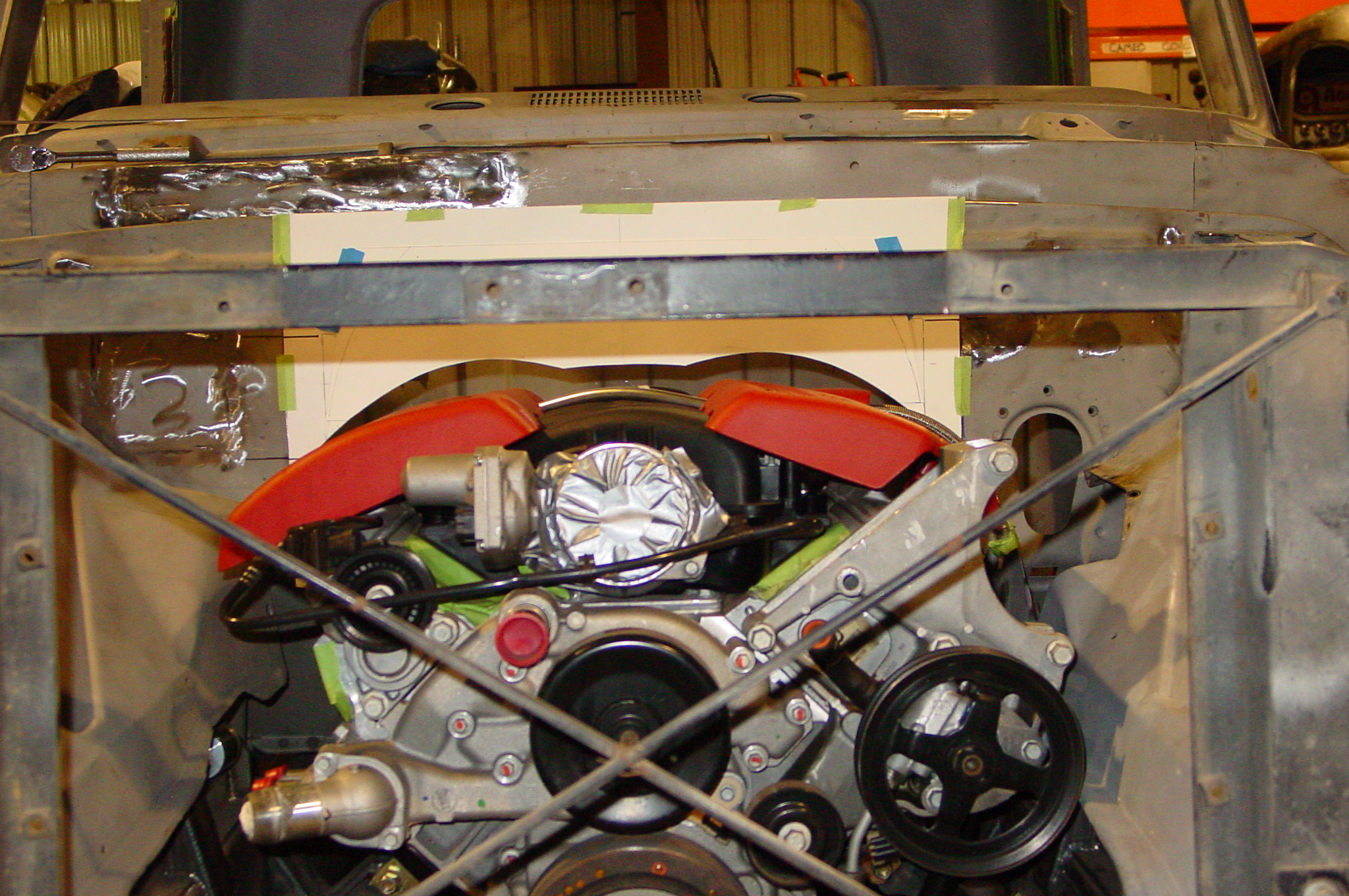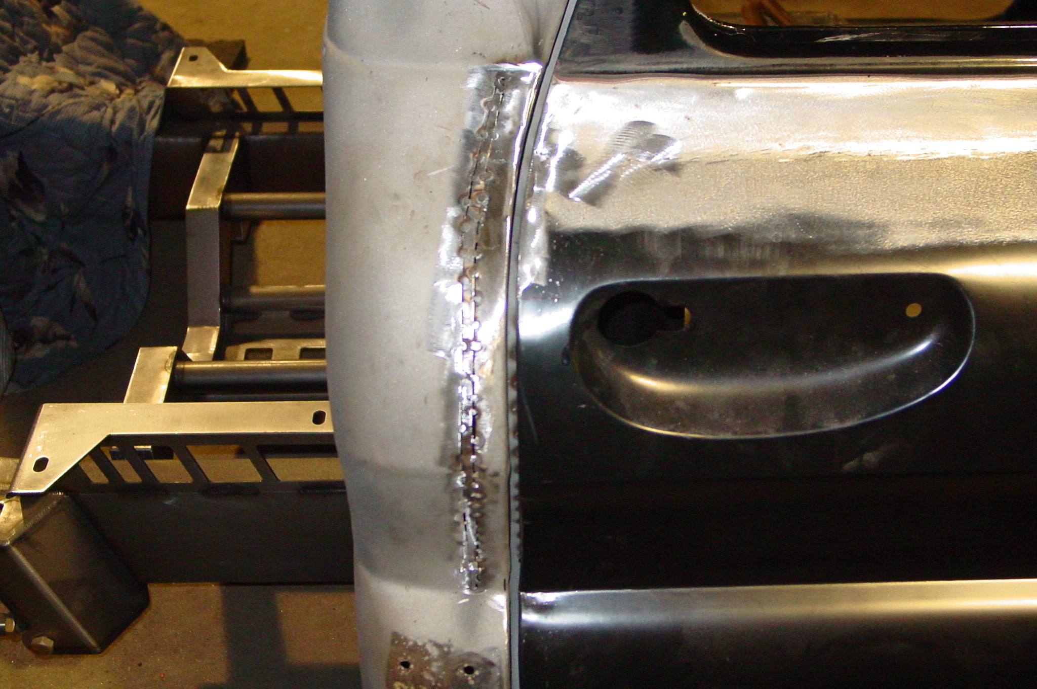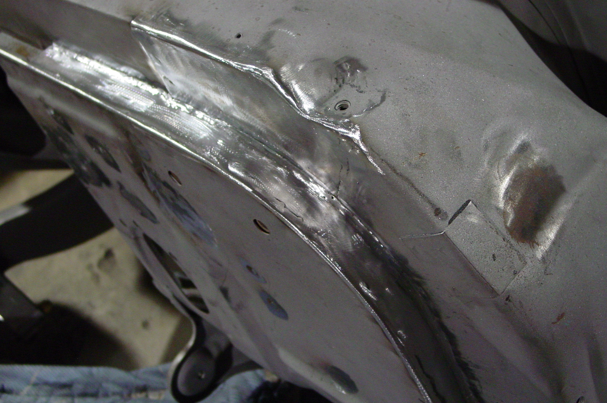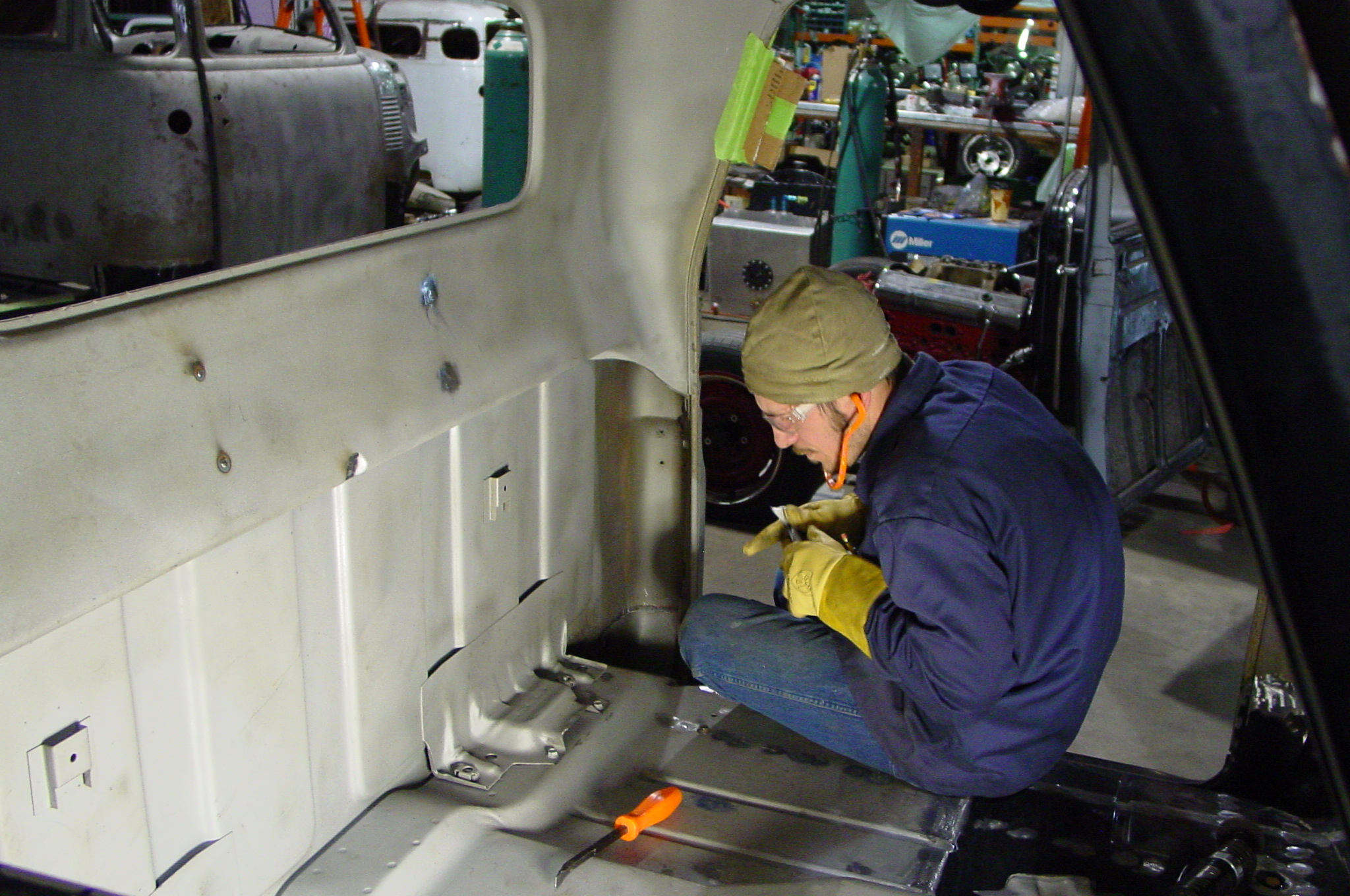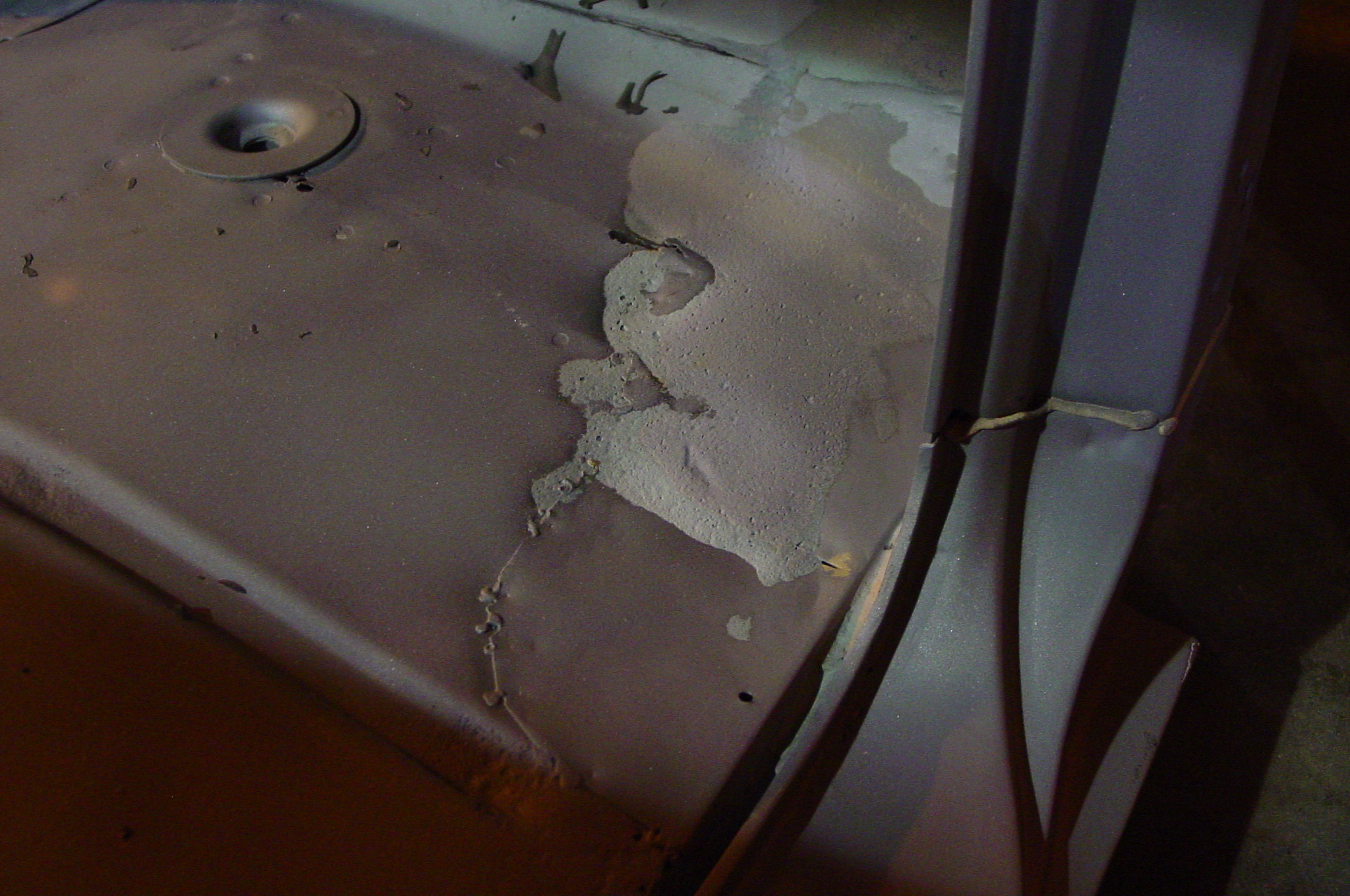 After blasting the old paint off we found a lot of filler over the rust holes. We removed the old rusted metal and replaced them with new steel. Now that the body is solid, the modifications have begun. -- Firewall, inner fenders, front fenders, front bumper, rear bumper, tailgate, and rear wheel opening.