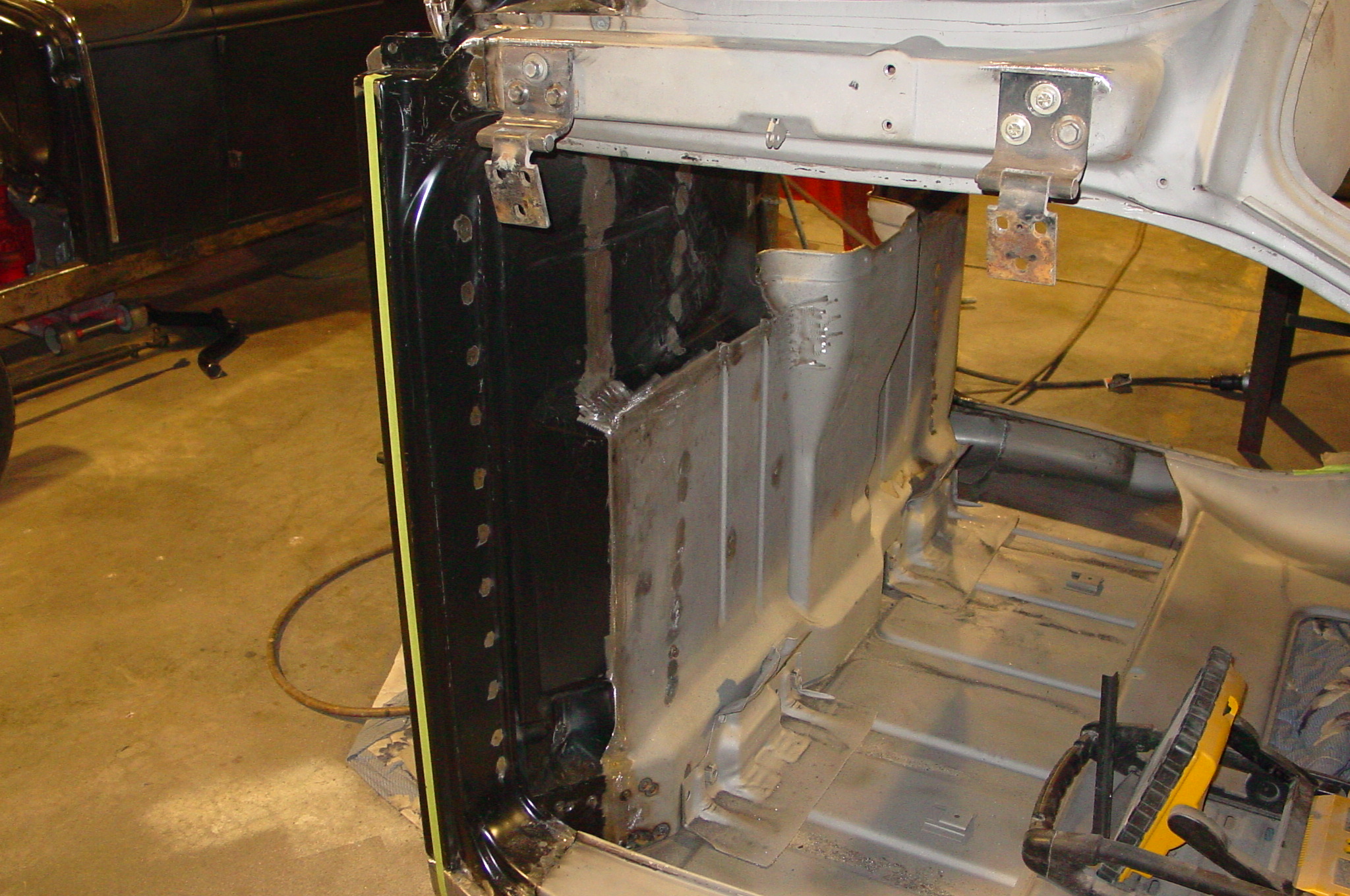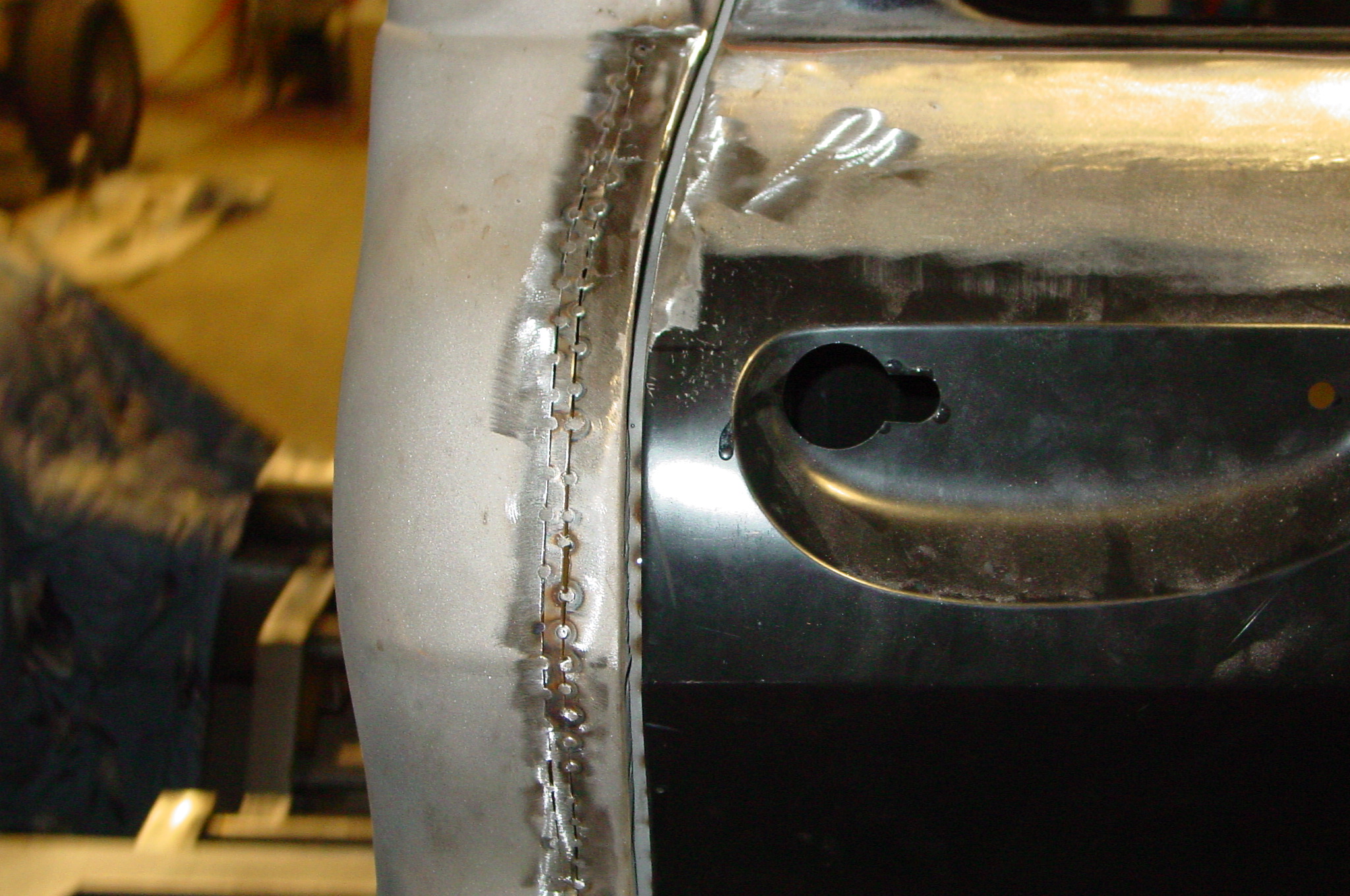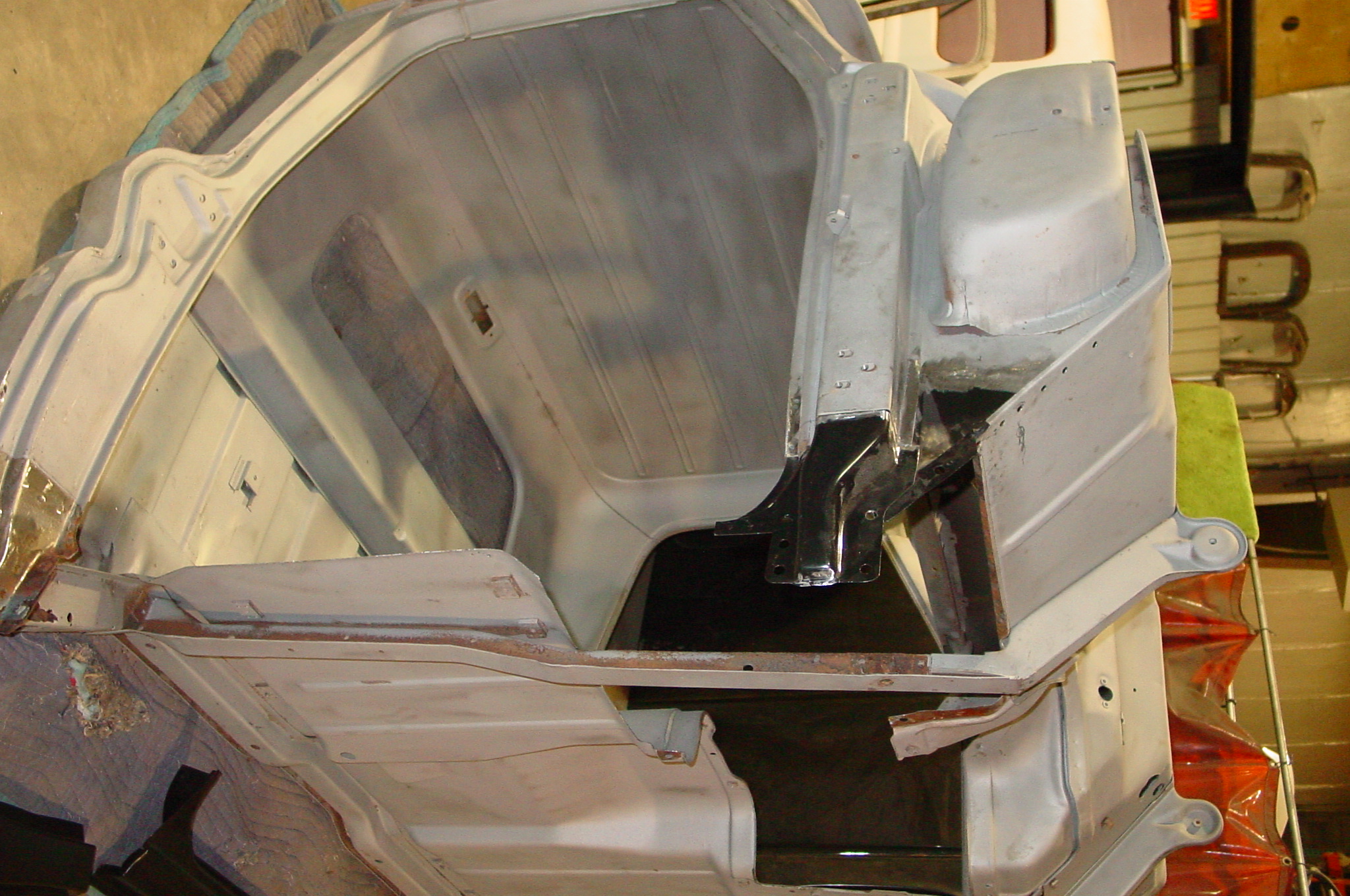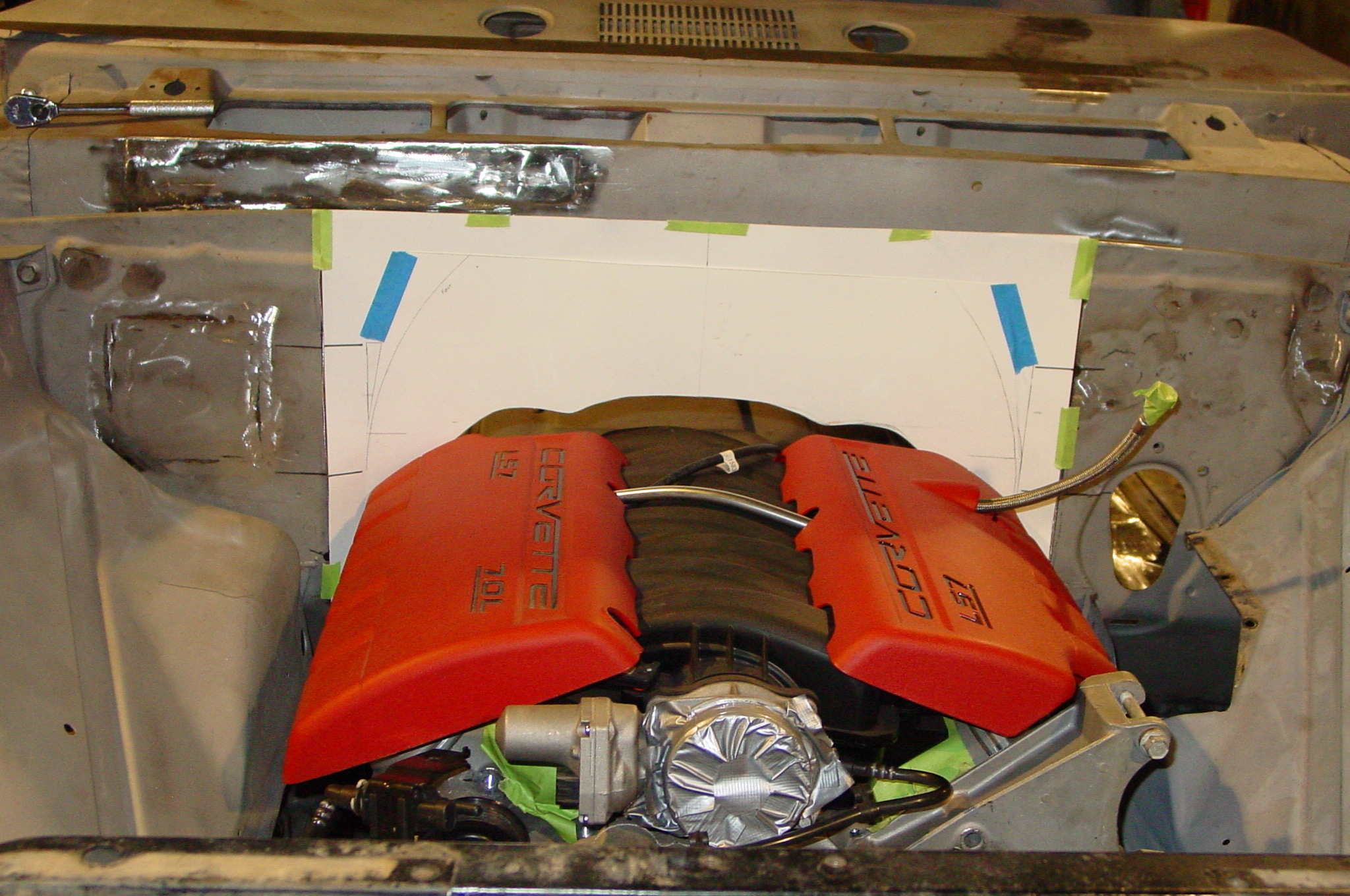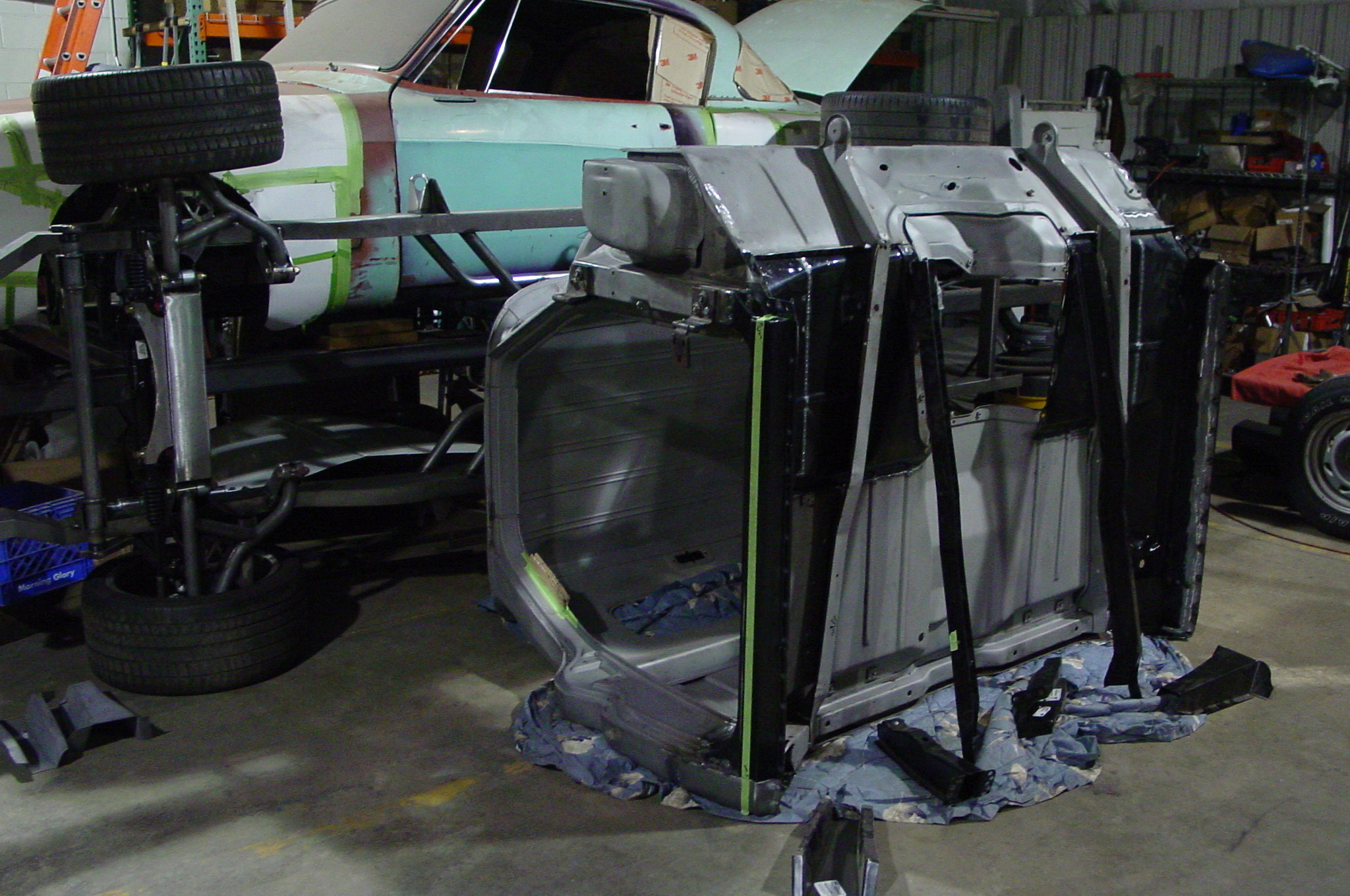 After blasting the old paint off we found a lot of filler over the rust holes. We removed the old rusted metal and replaced them with new steel. Now that the body is solid, the modifications have begun. -- Firewall, inner fenders, front fenders, front bumper, rear bumper, tailgate, and rear wheel opening.