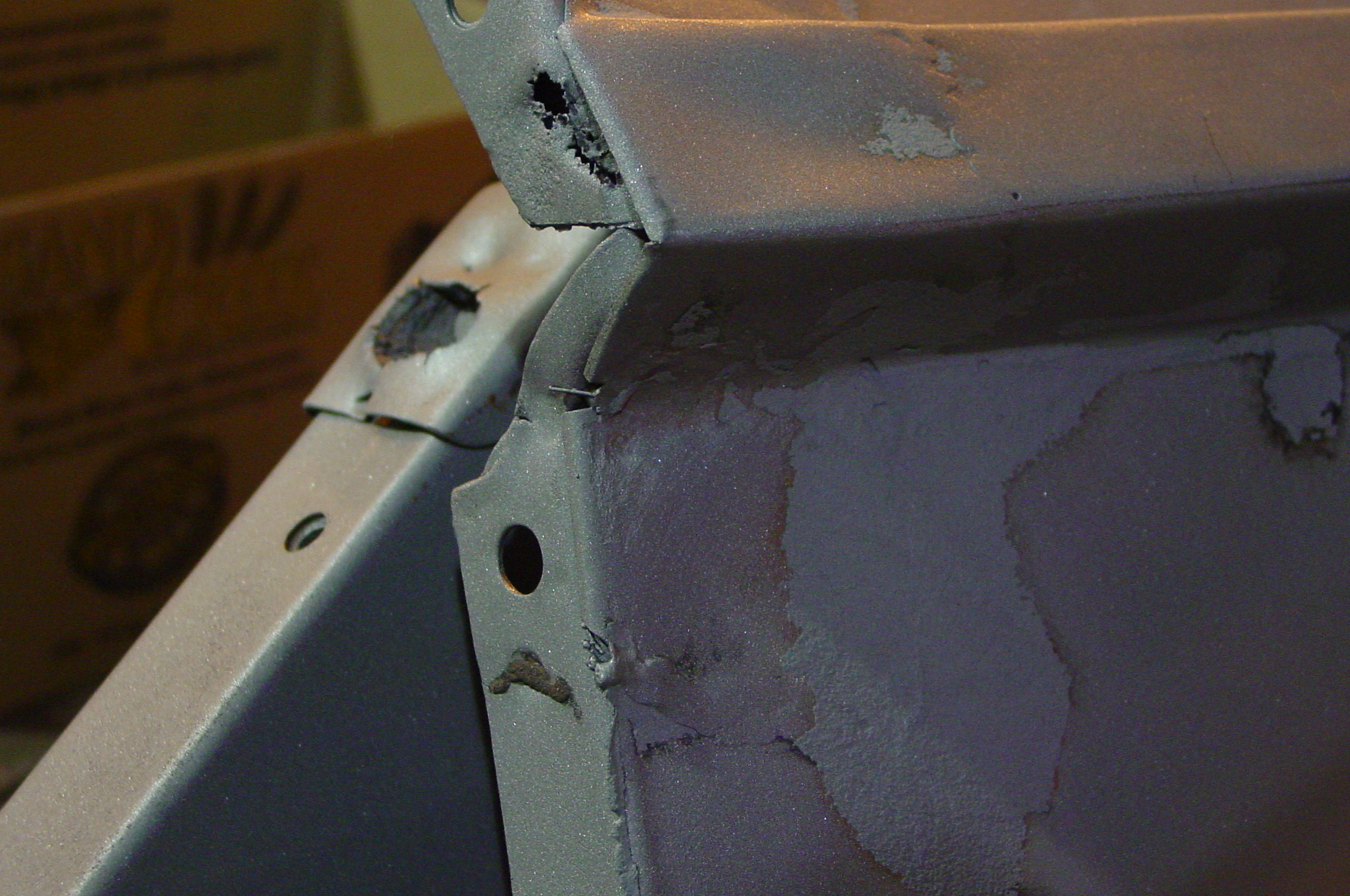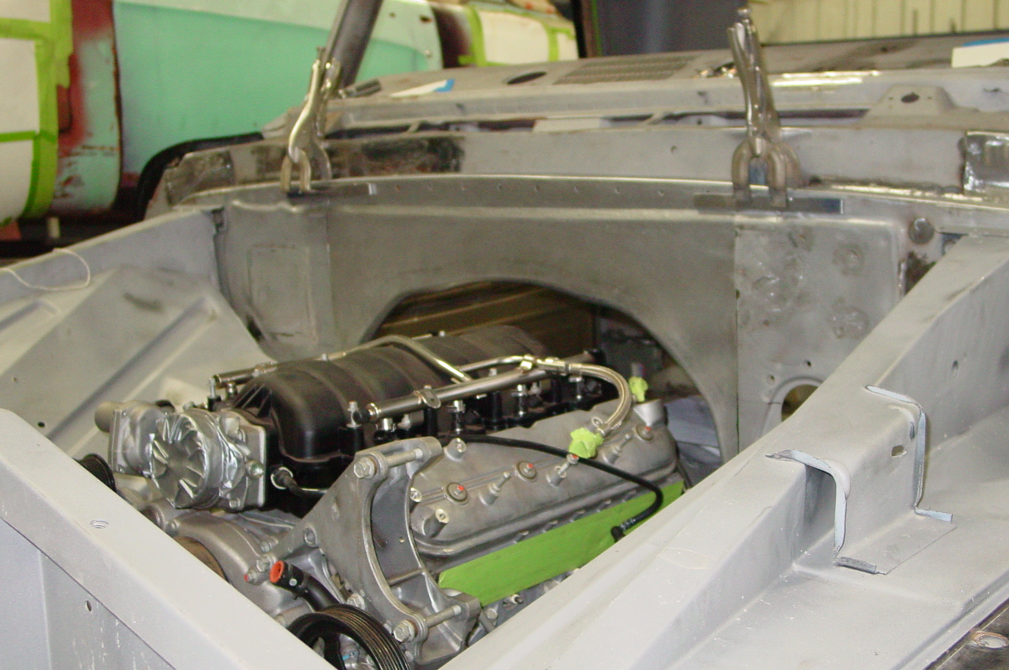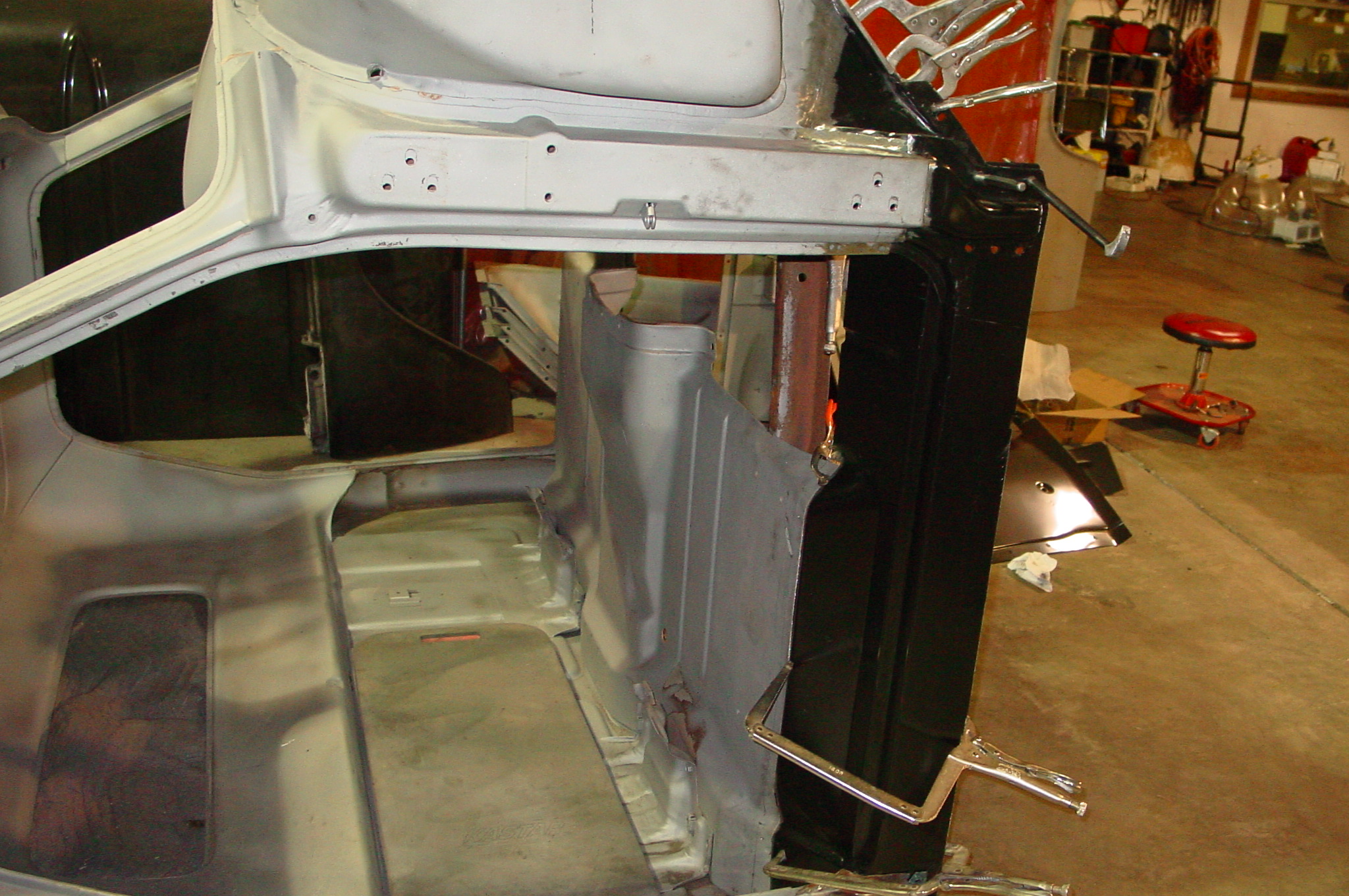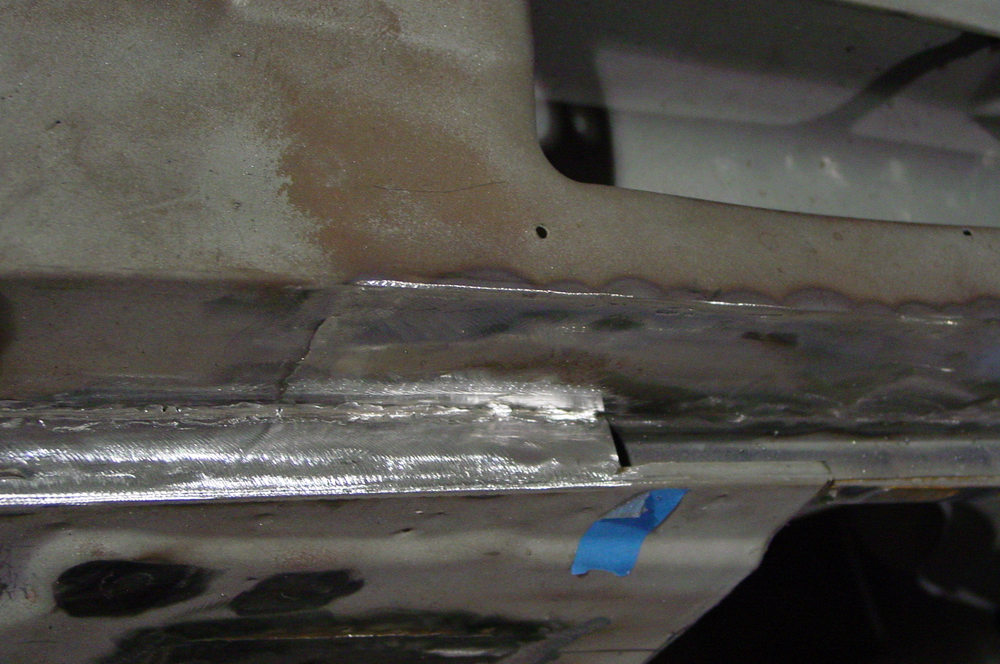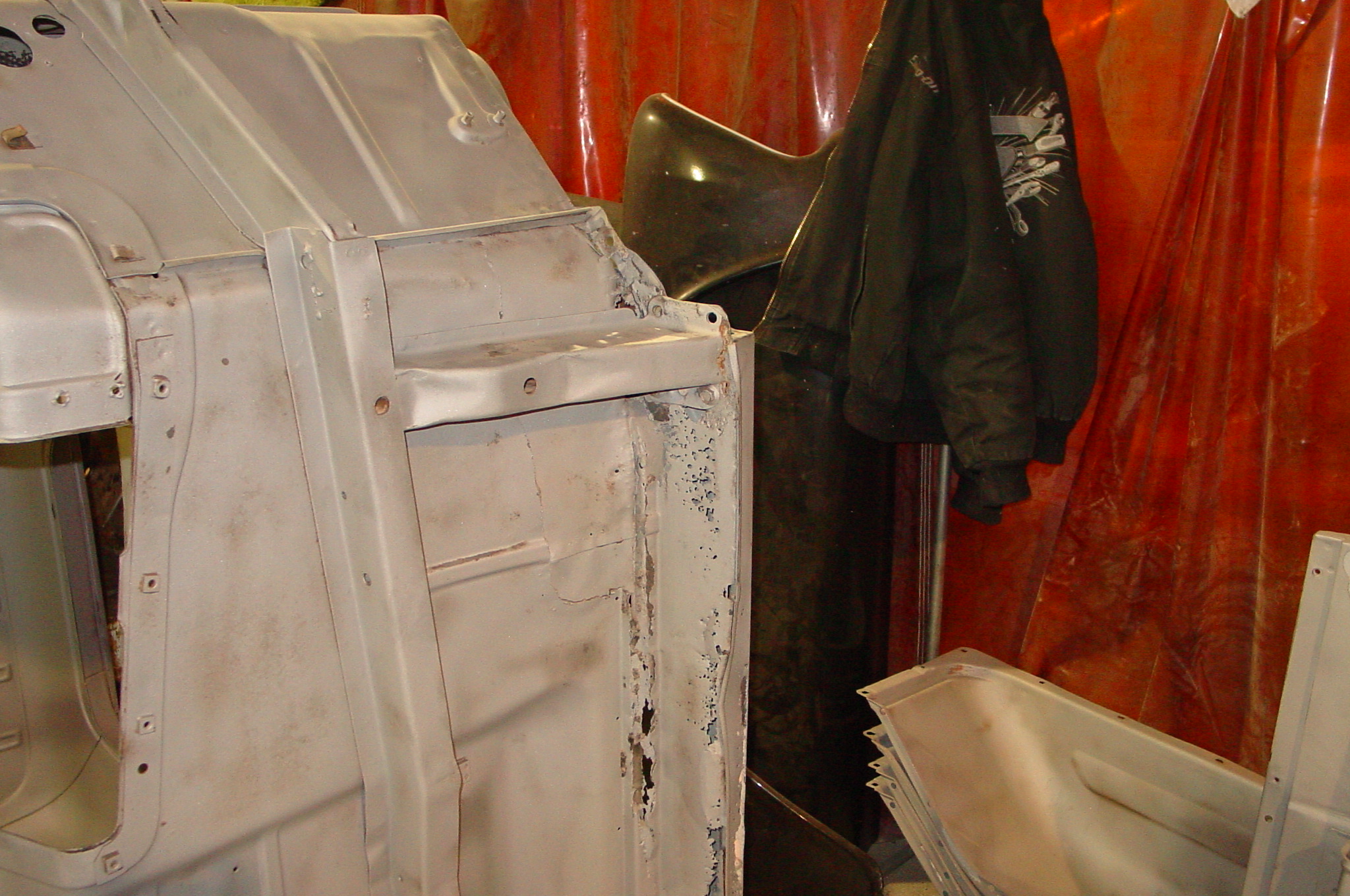 After blasting the old paint off we found a lot of filler over the rust holes. We removed the old rusted metal and replaced them with new steel. Now that the body is solid, the modifications have begun. -- Firewall, inner fenders, front fenders, front bumper, rear bumper, tailgate, and rear wheel opening.
