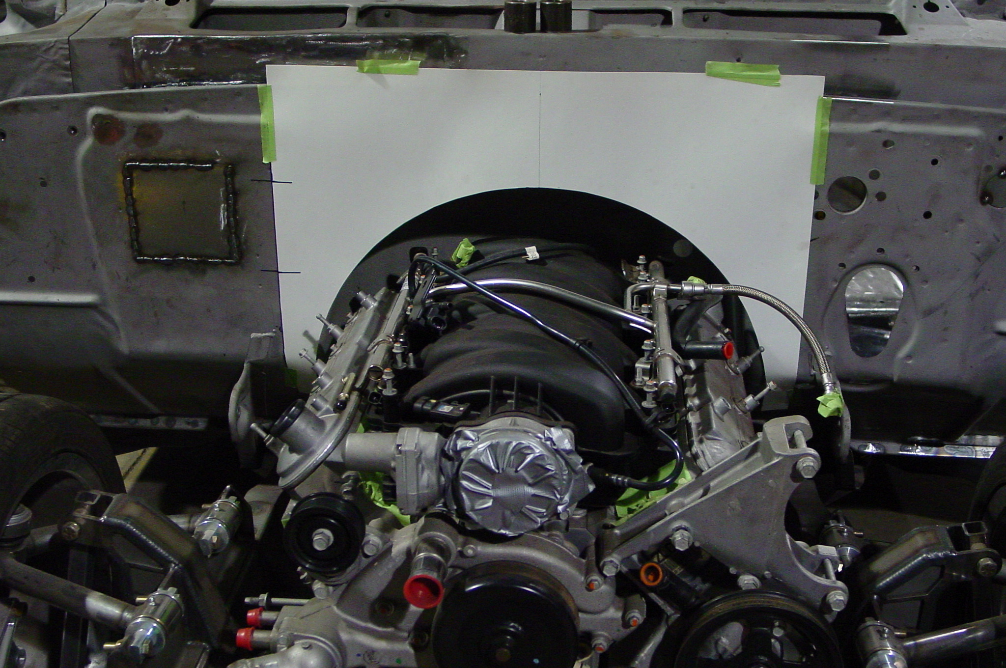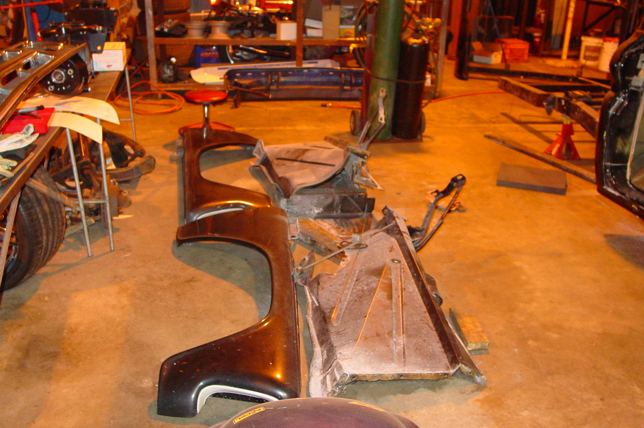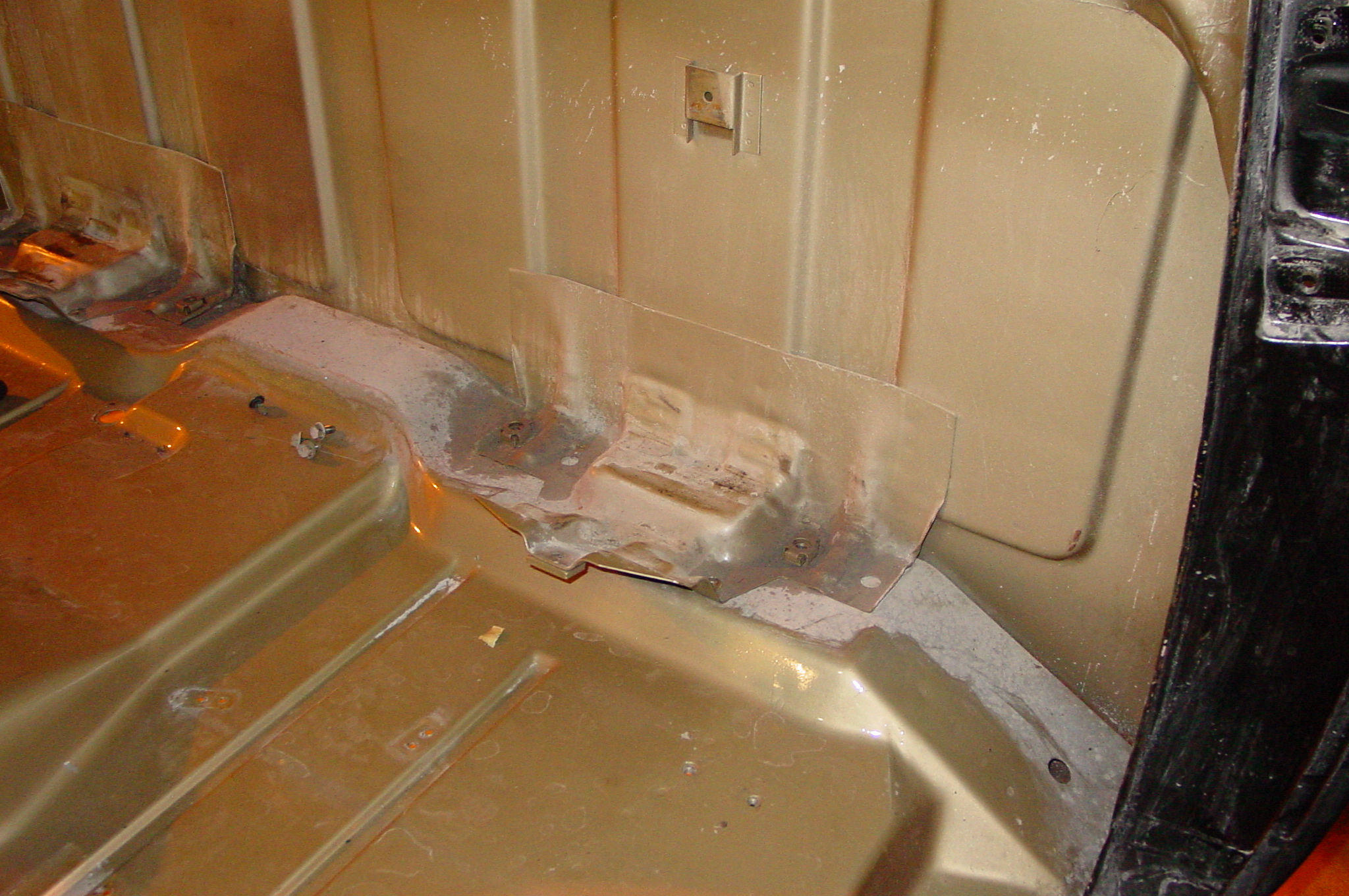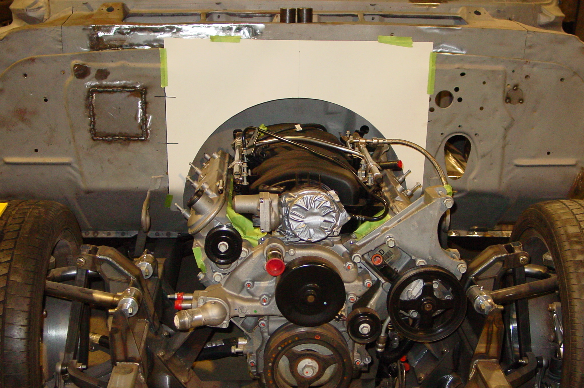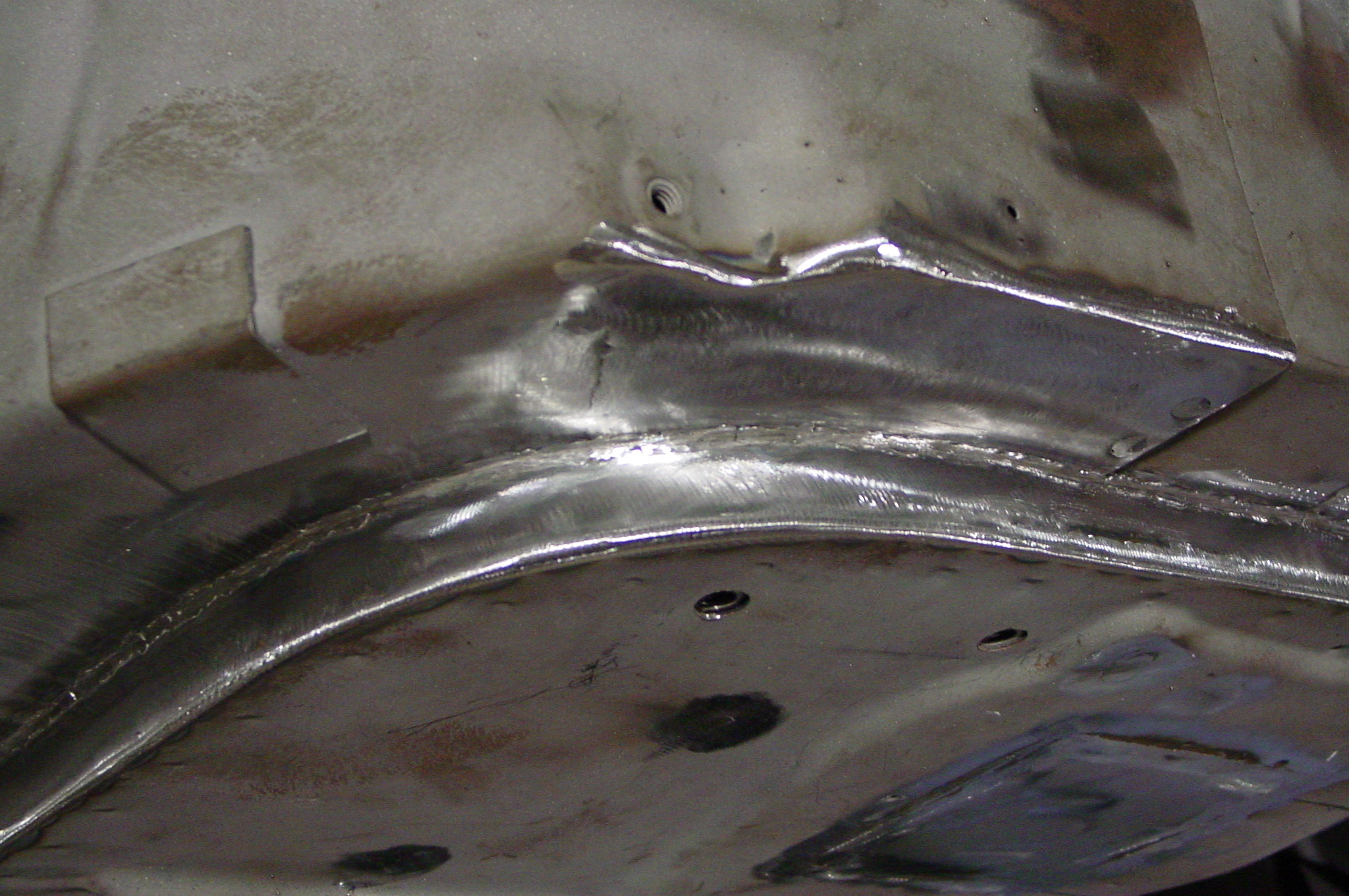 After blasting the old paint off we found a lot of filler over the rust holes. We removed the old rusted metal and replaced them with new steel. Now that the body is solid, the modifications have begun. -- Firewall, inner fenders, front fenders, front bumper, rear bumper, tailgate, and rear wheel opening.