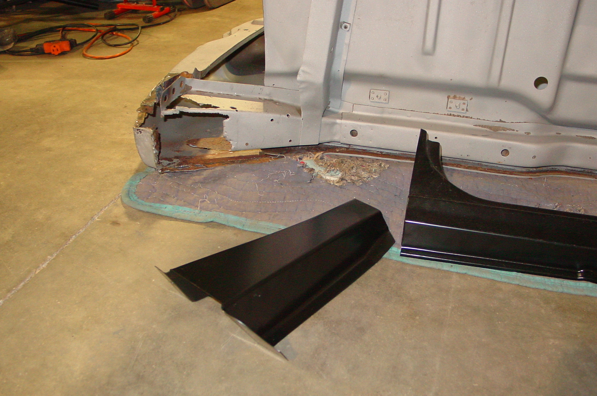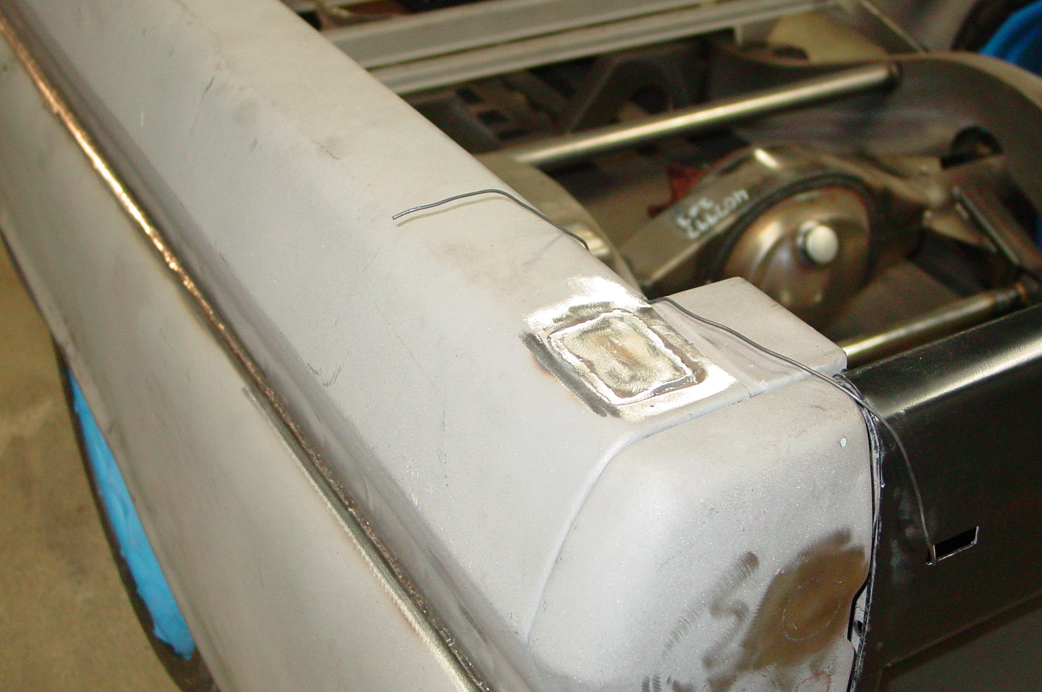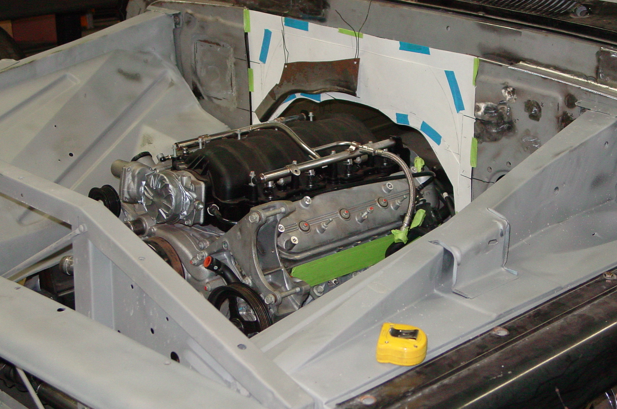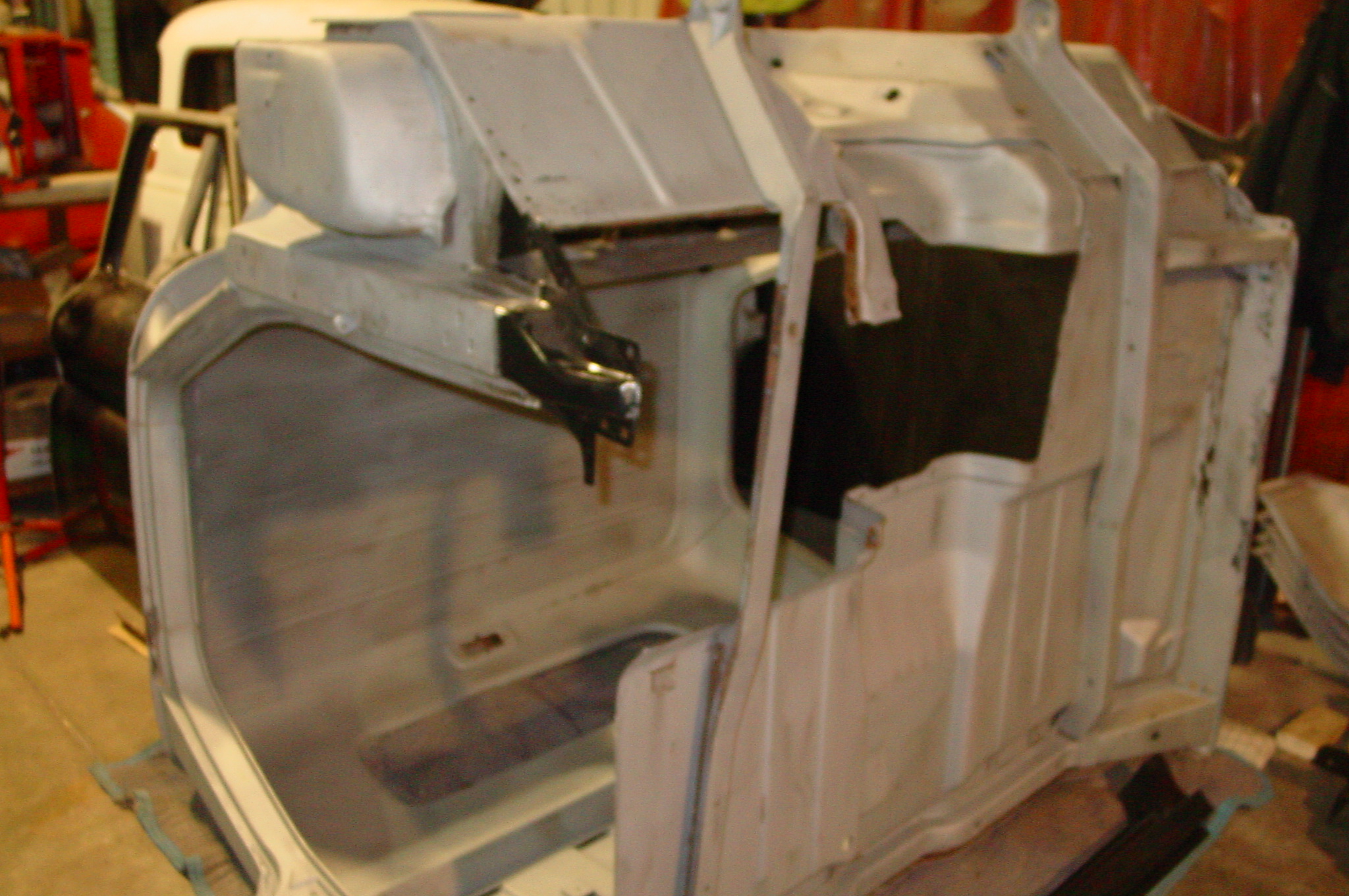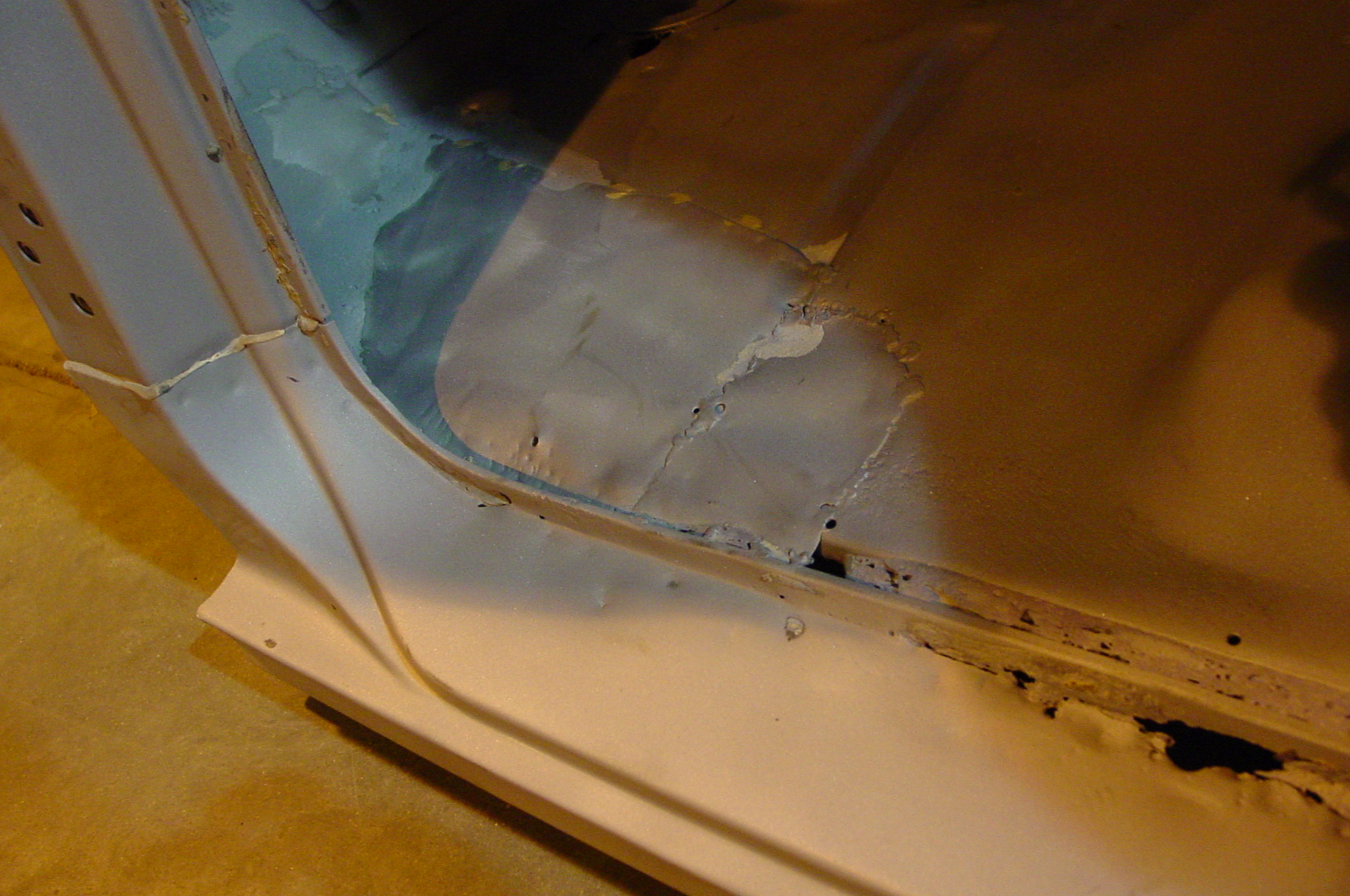 After blasting the old paint off we found a lot of filler over the rust holes. We removed the old rusted metal and replaced them with new steel. Now that the body is solid, the modifications have begun. -- Firewall, inner fenders, front fenders, front bumper, rear bumper, tailgate, and rear wheel opening.