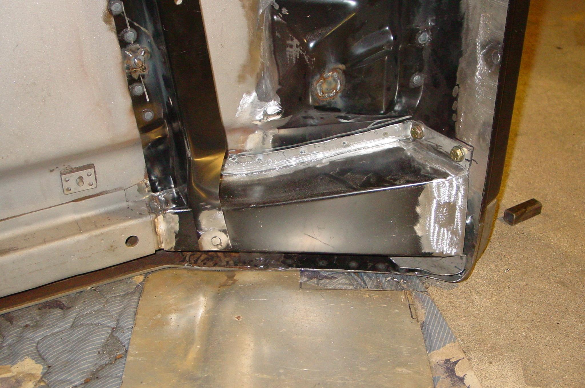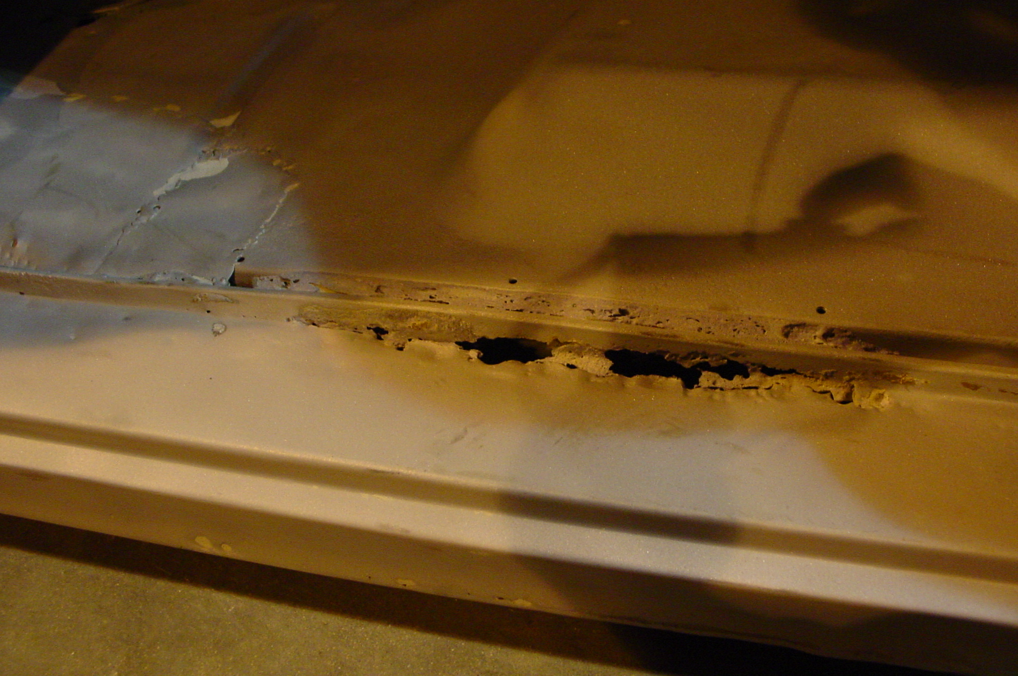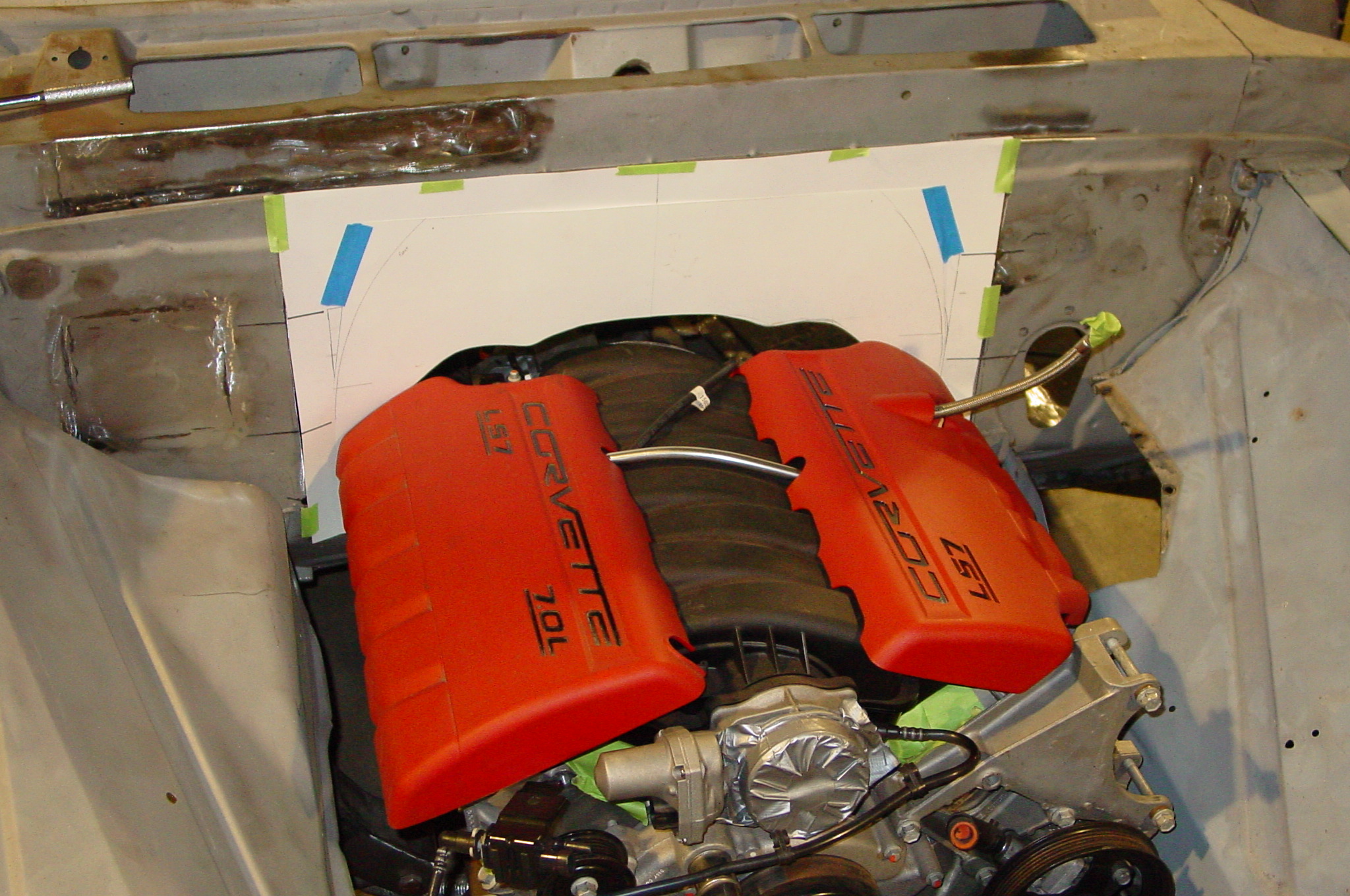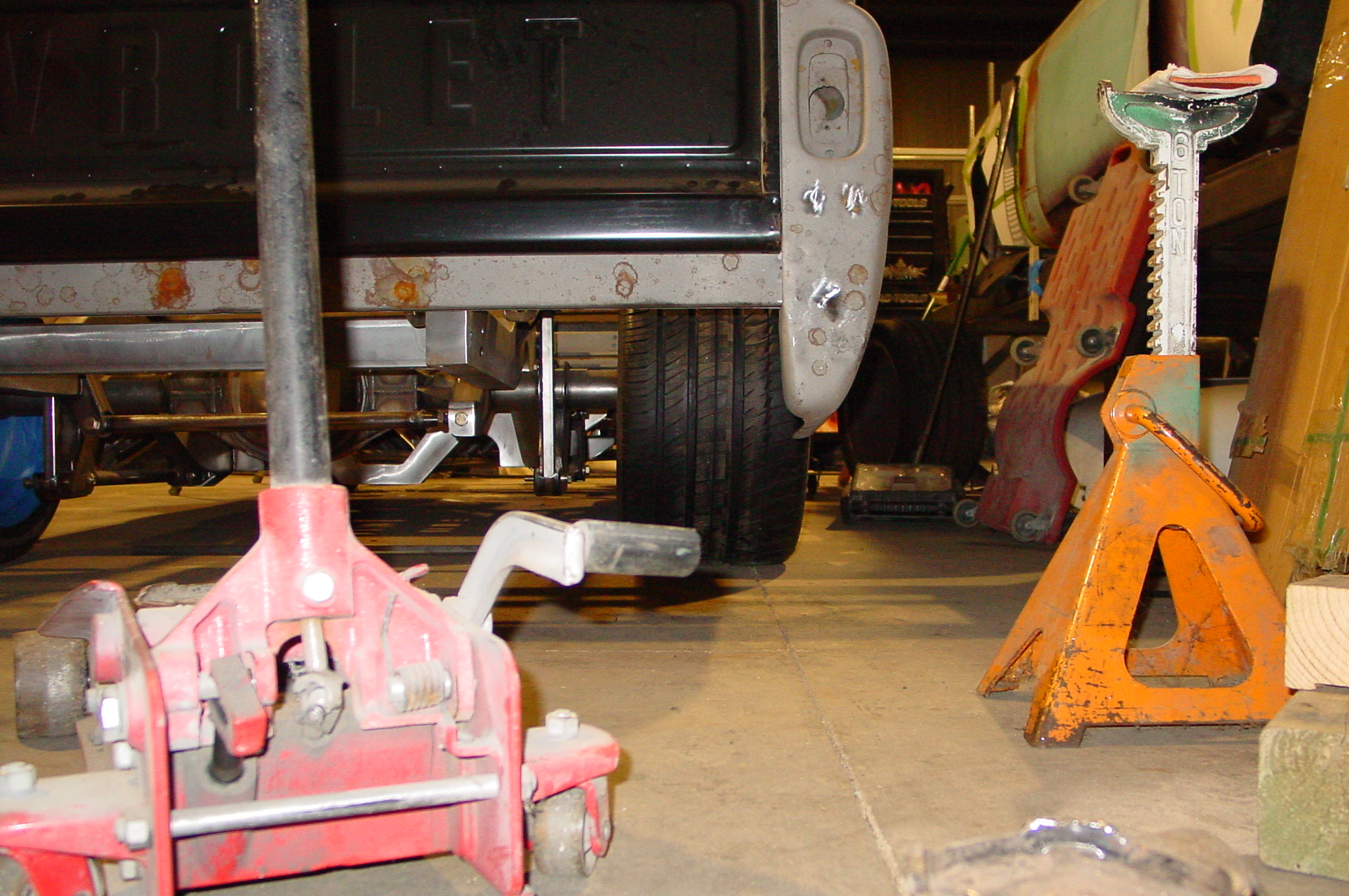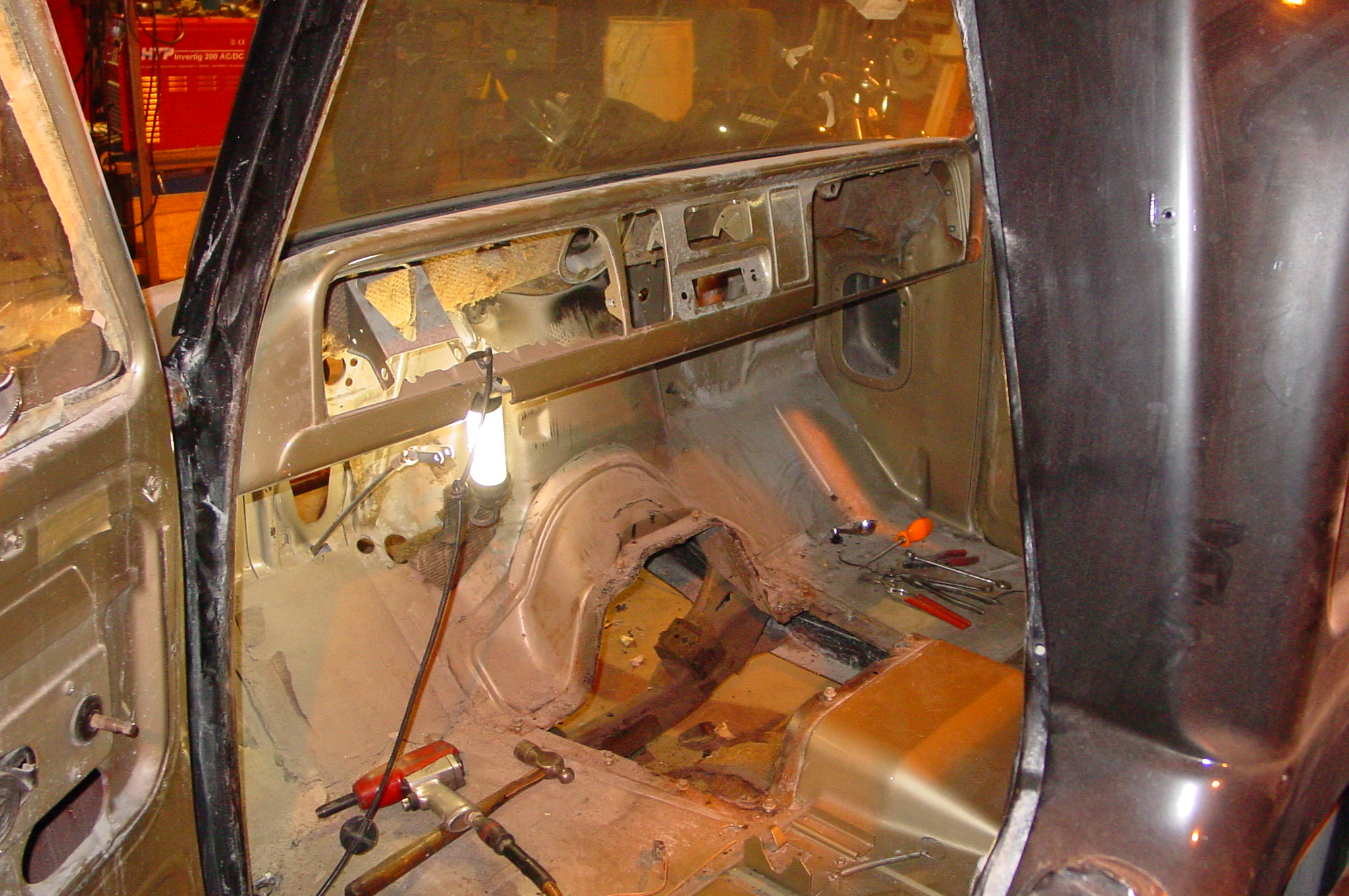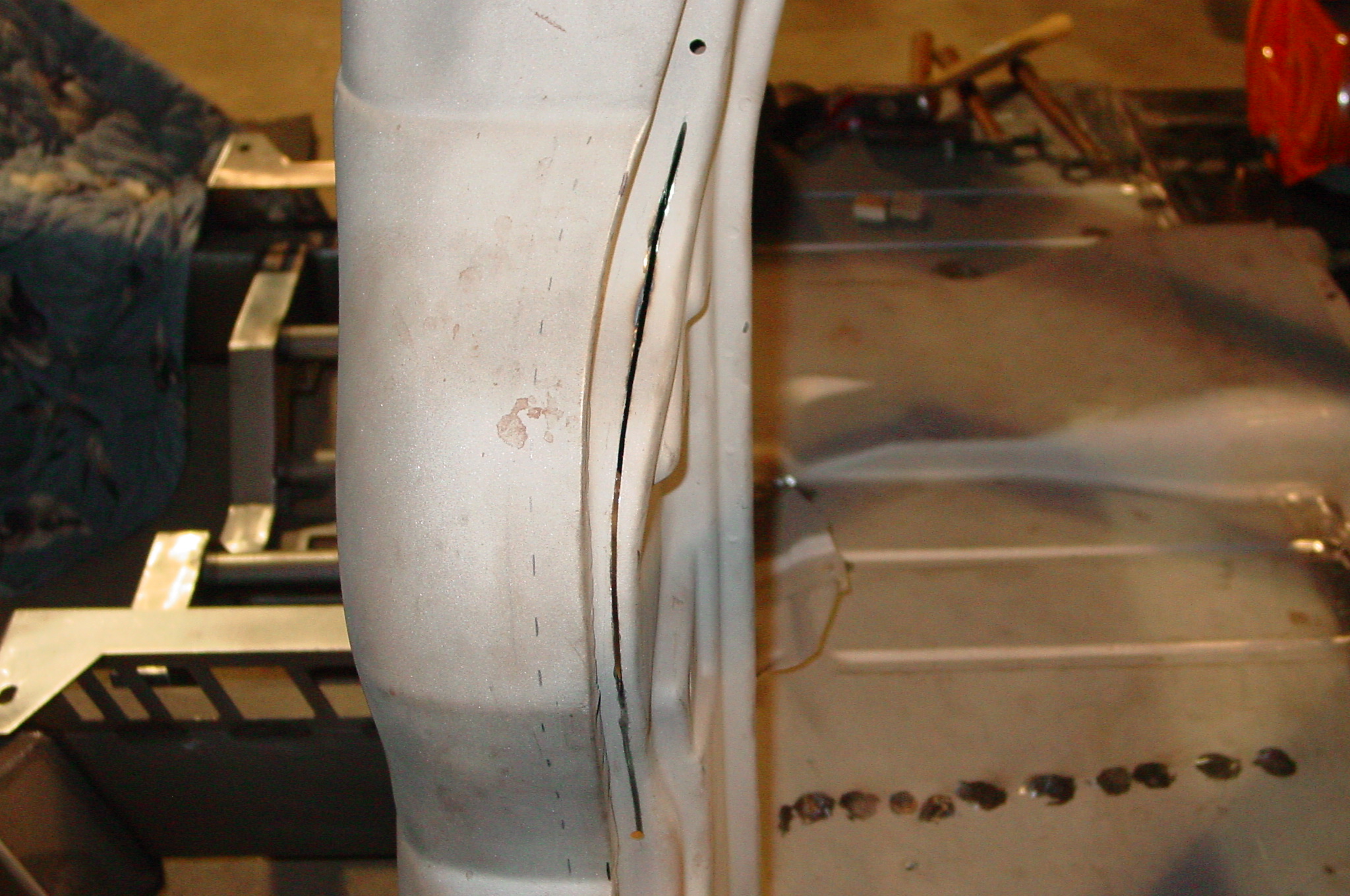 After blasting the old paint off we found a lot of filler over the rust holes. We removed the old rusted metal and replaced them with new steel. Now that the body is solid, the modifications have begun. -- Firewall, inner fenders, front fenders, front bumper, rear bumper, tailgate, and rear wheel opening.
