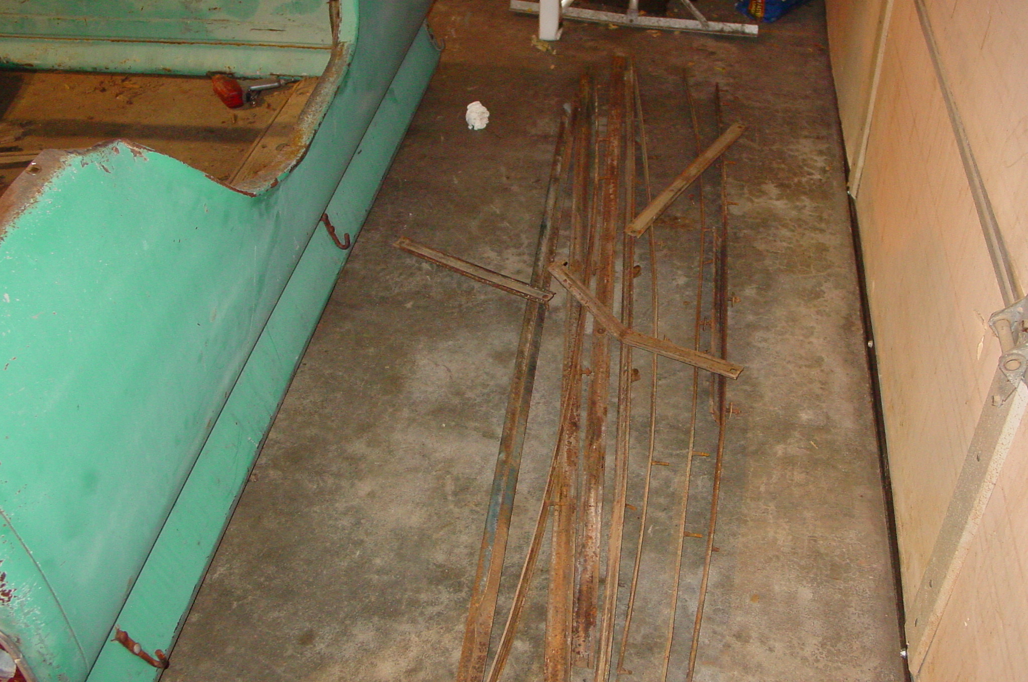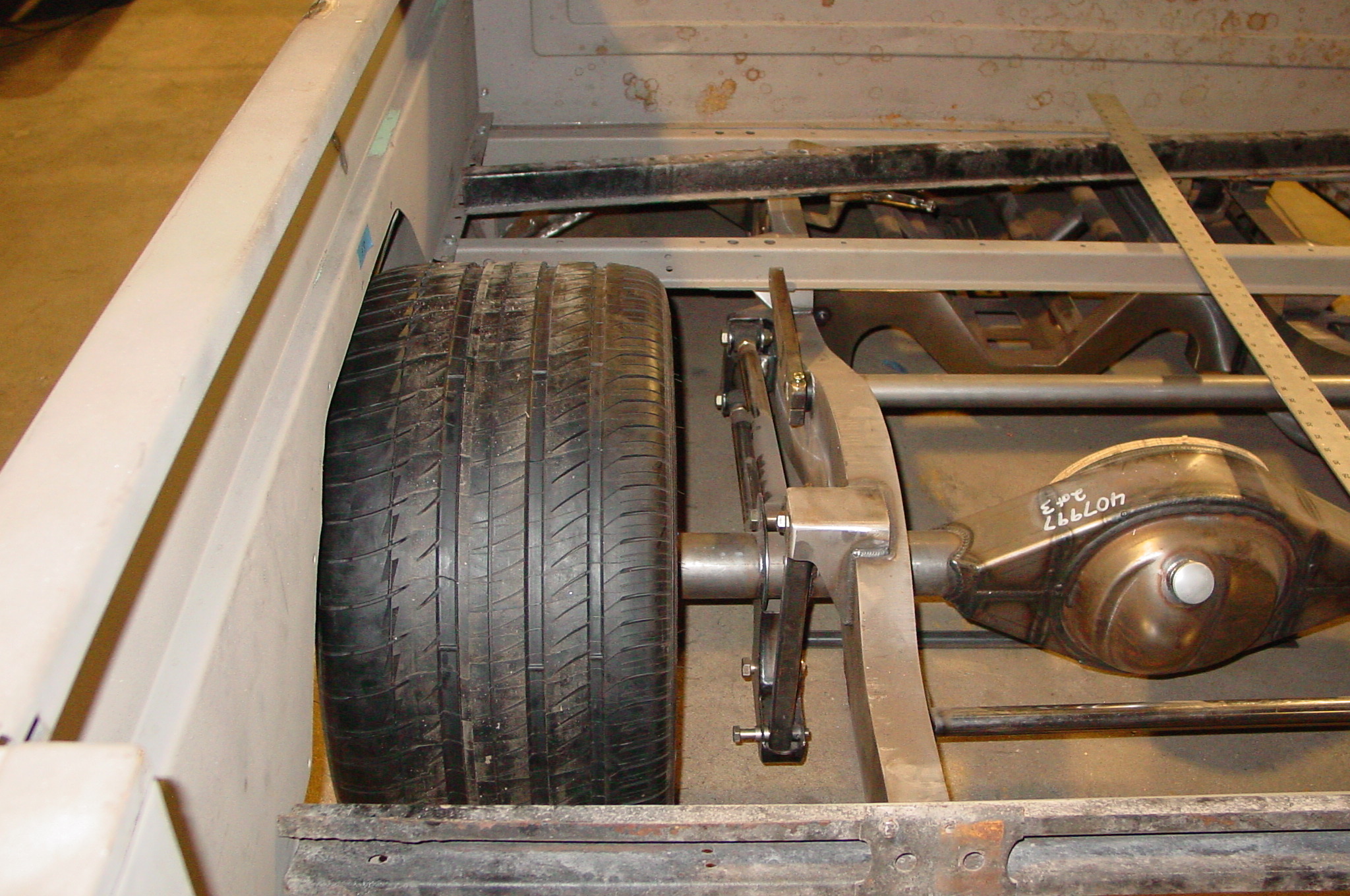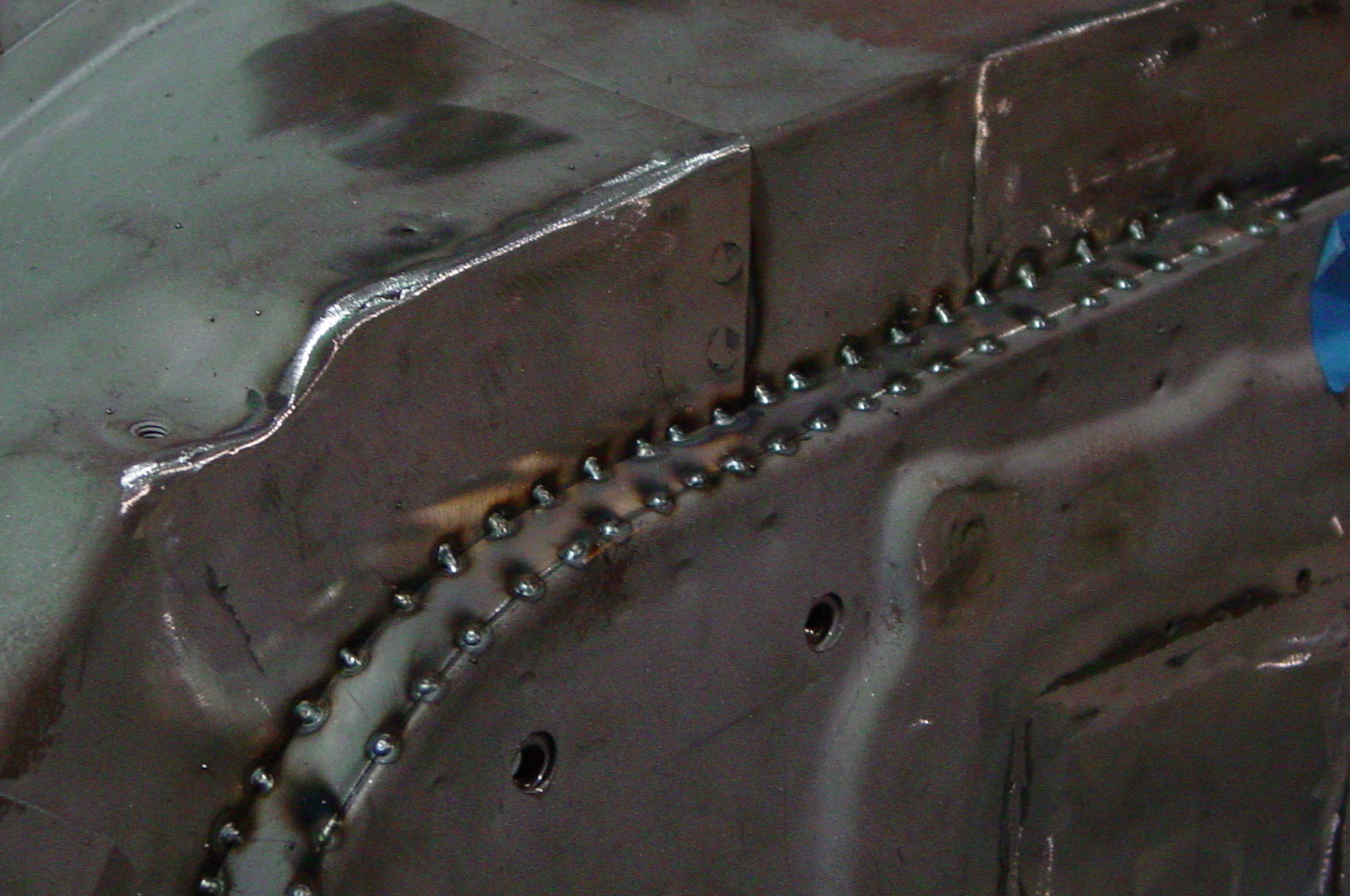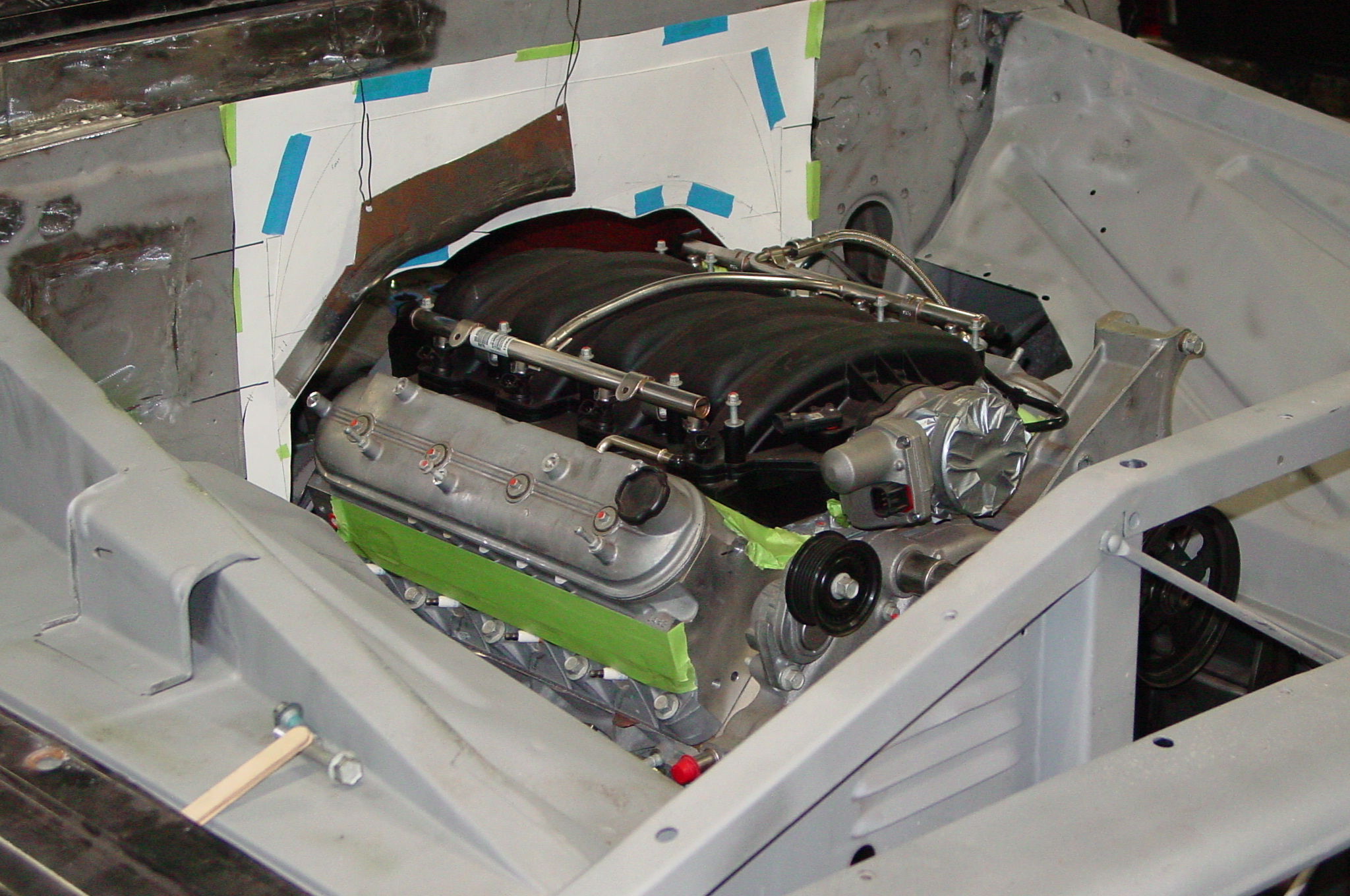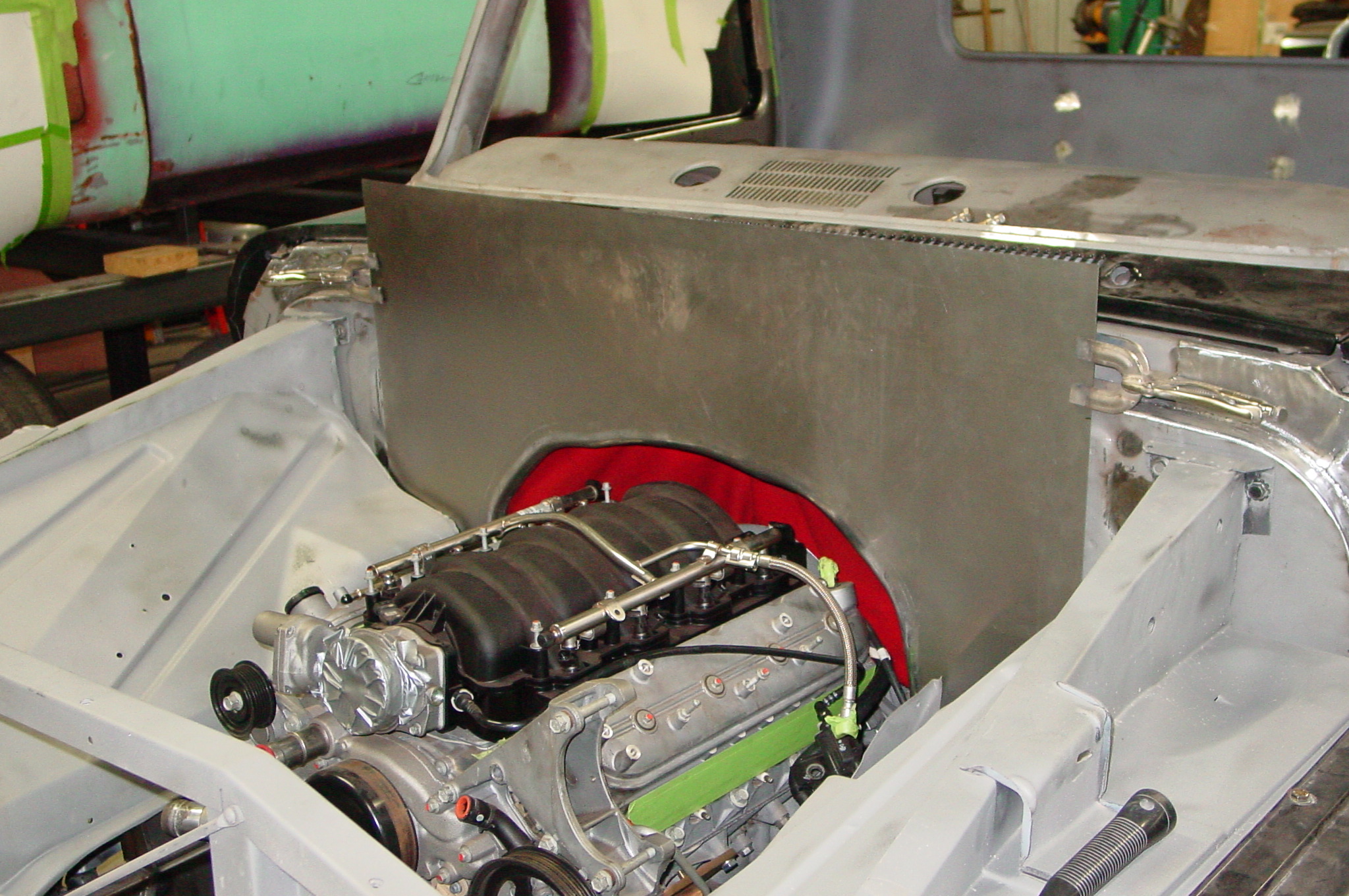After blasting the old paint off we found a lot of filler over the rust holes. We removed the old rusted metal and replaced them with new steel. Now that the body is solid, the modifications have begun. -- Firewall, inner fenders, front fenders, front bumper, rear bumper, tailgate, and rear wheel opening.