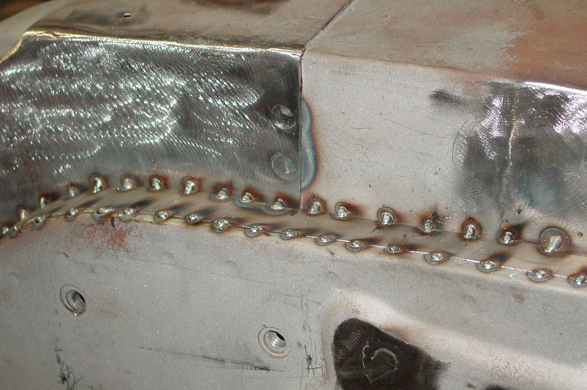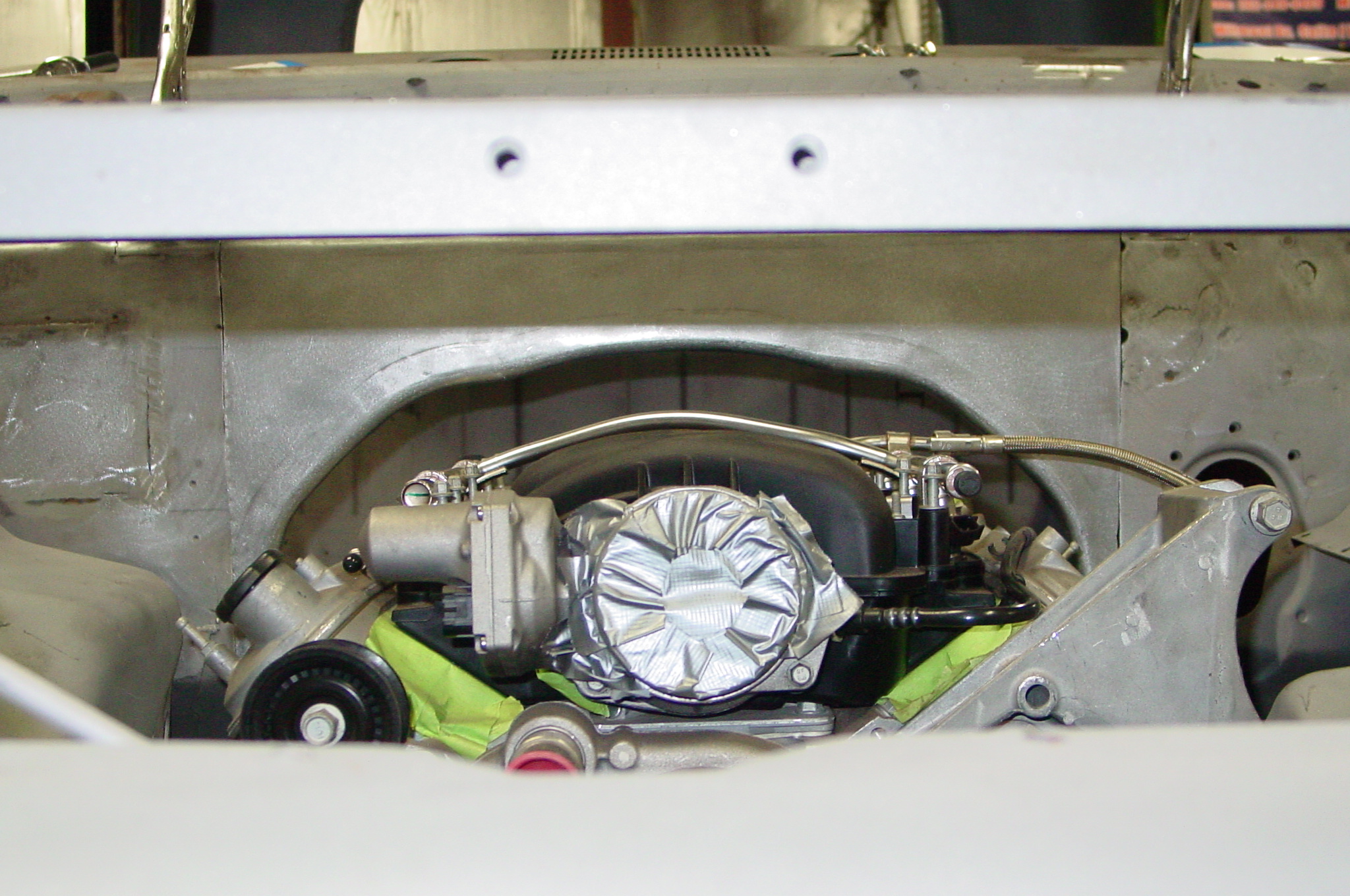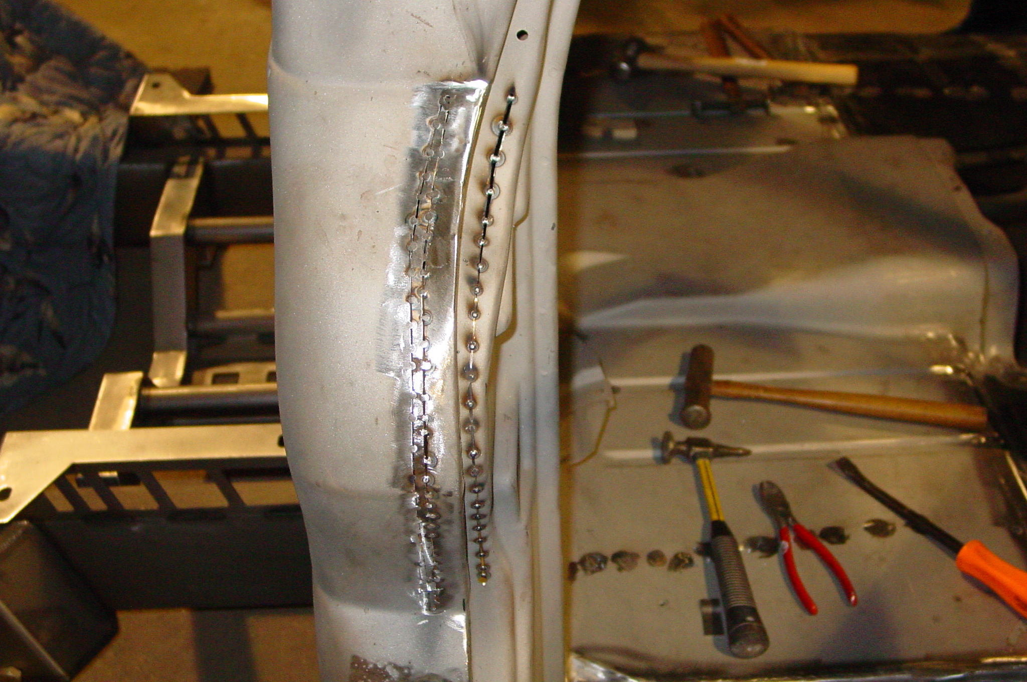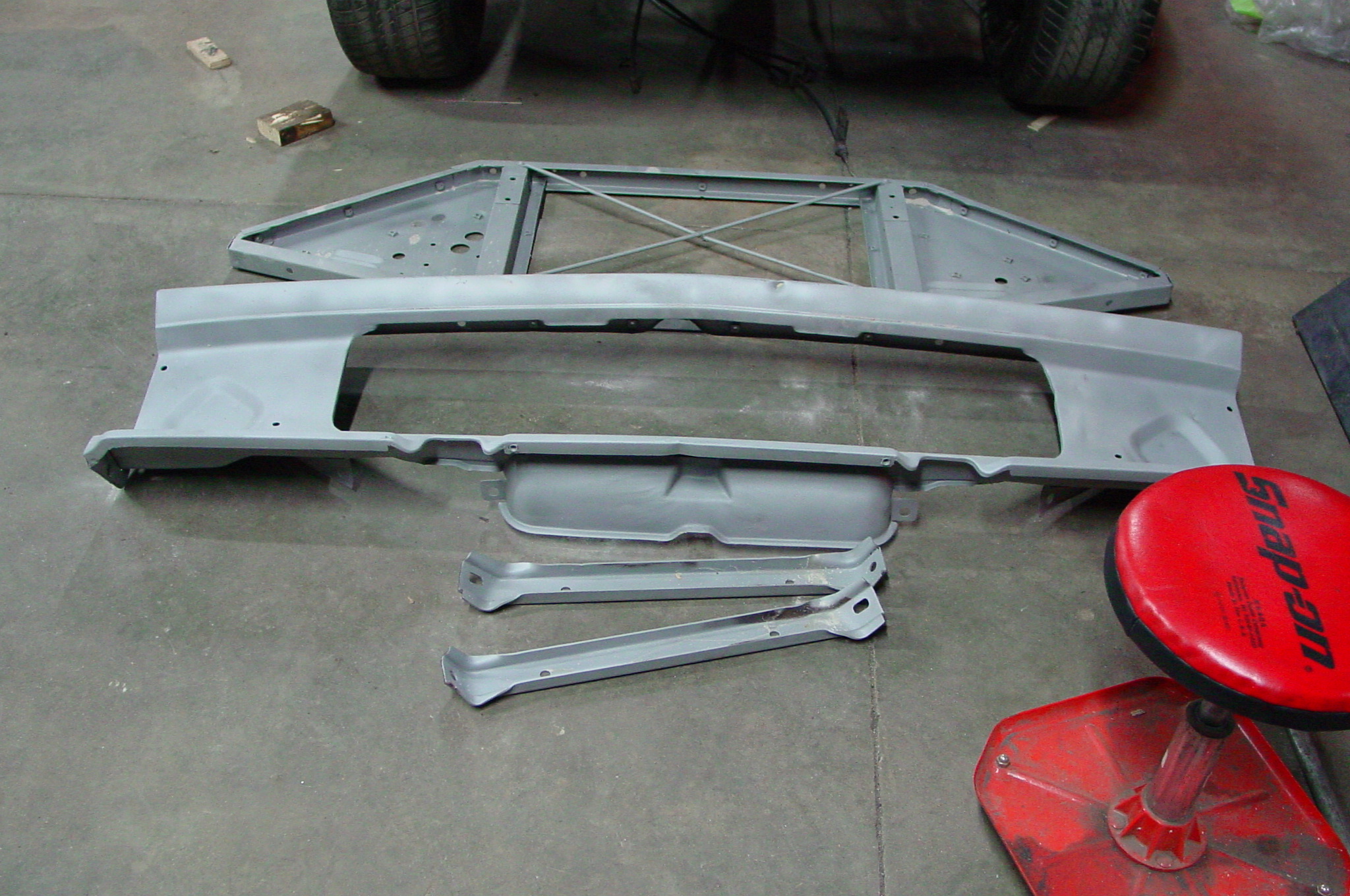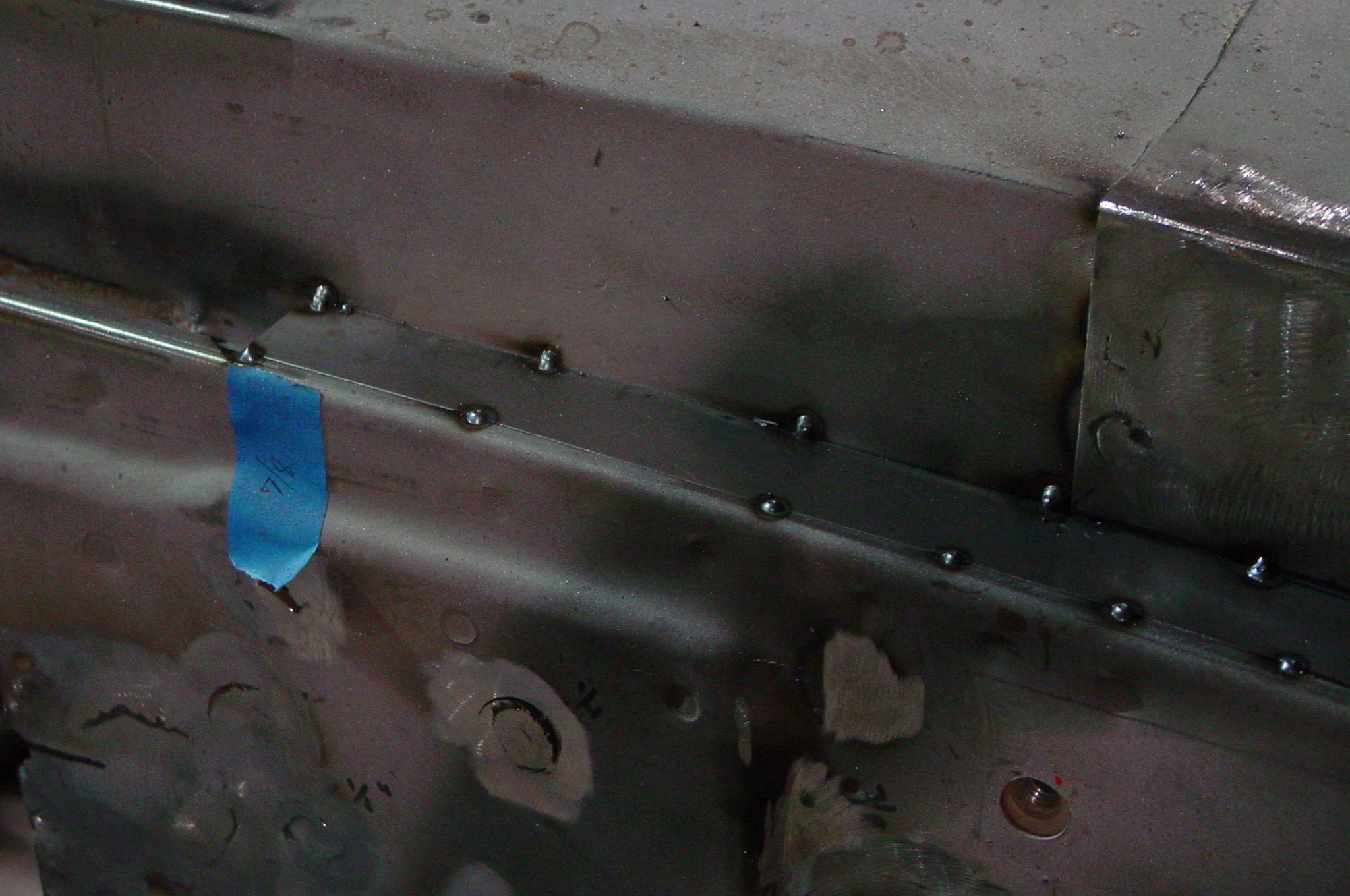 After blasting the old paint off we found a lot of filler over the rust holes. We removed the old rusted metal and replaced them with new steel. Now that the body is solid, the modifications have begun. -- Firewall, inner fenders, front fenders, front bumper, rear bumper, tailgate, and rear wheel opening.