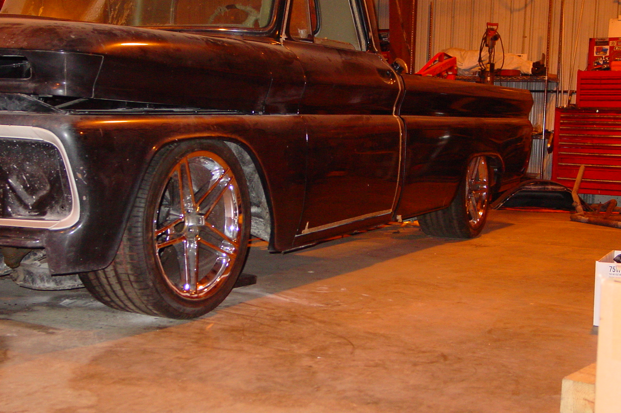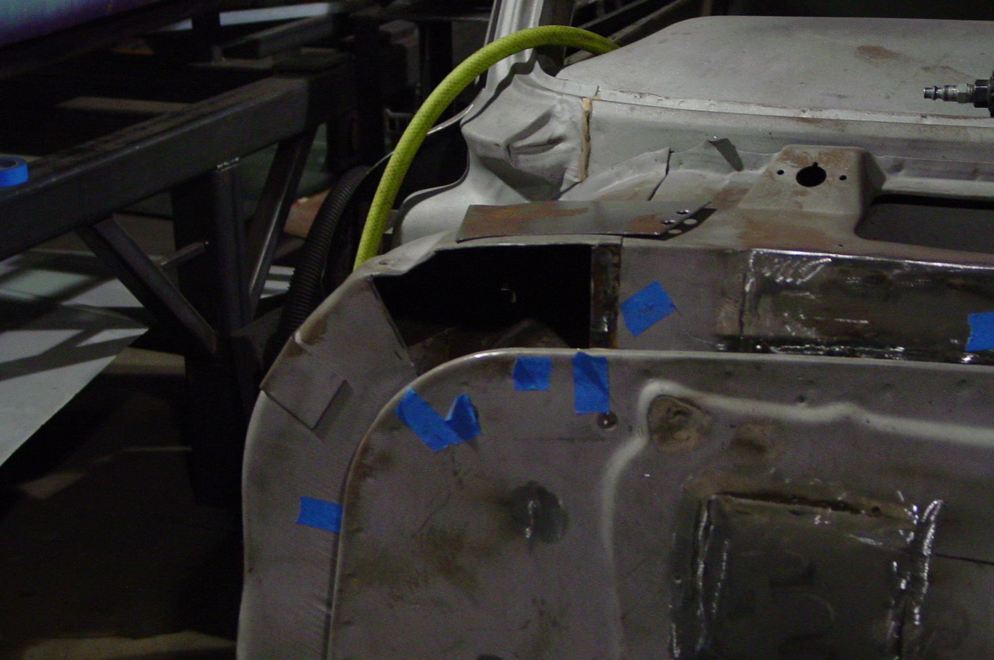 After blasting the old paint off we found a lot of filler over the rust holes. We removed the old rusted metal and replaced them with new steel. Now that the body is solid, the modifications have begun. -- Firewall, inner fenders, front fenders, front bumper, rear bumper, tailgate, and rear wheel opening.